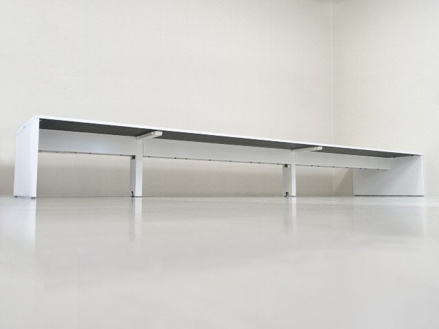 また、中間脚が内側に付いている為、中間脚部(天板連結部)にもワゴンを設置する事が出来ます。