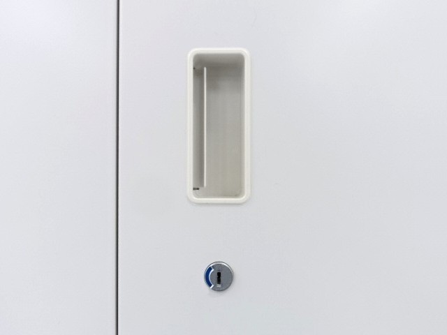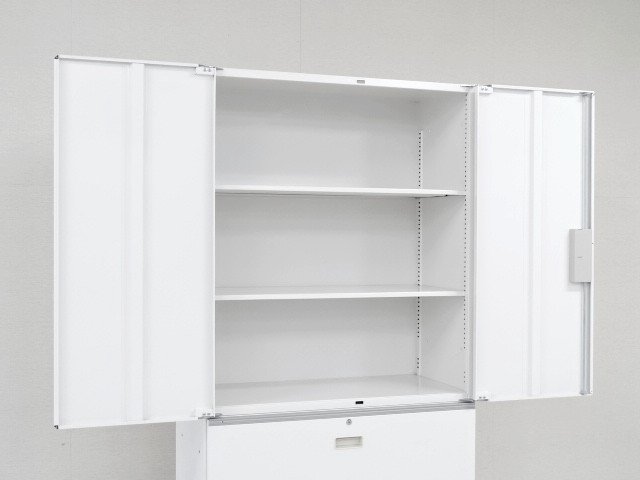イトーキ製シンラインキャビネットシリーズの両開き3段ラテラルユニット書庫です。