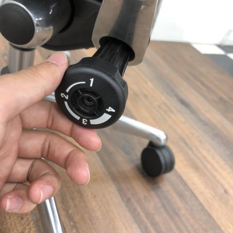- ロッキングの強弱を調整するダイヤルがございます。体型に合わせてリクライニングの固さを座ったままで調整できます。