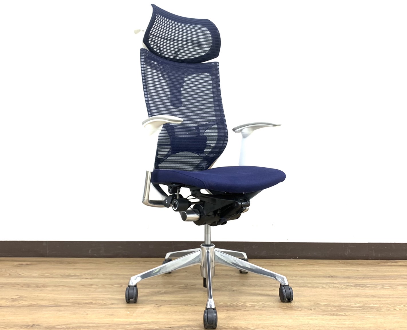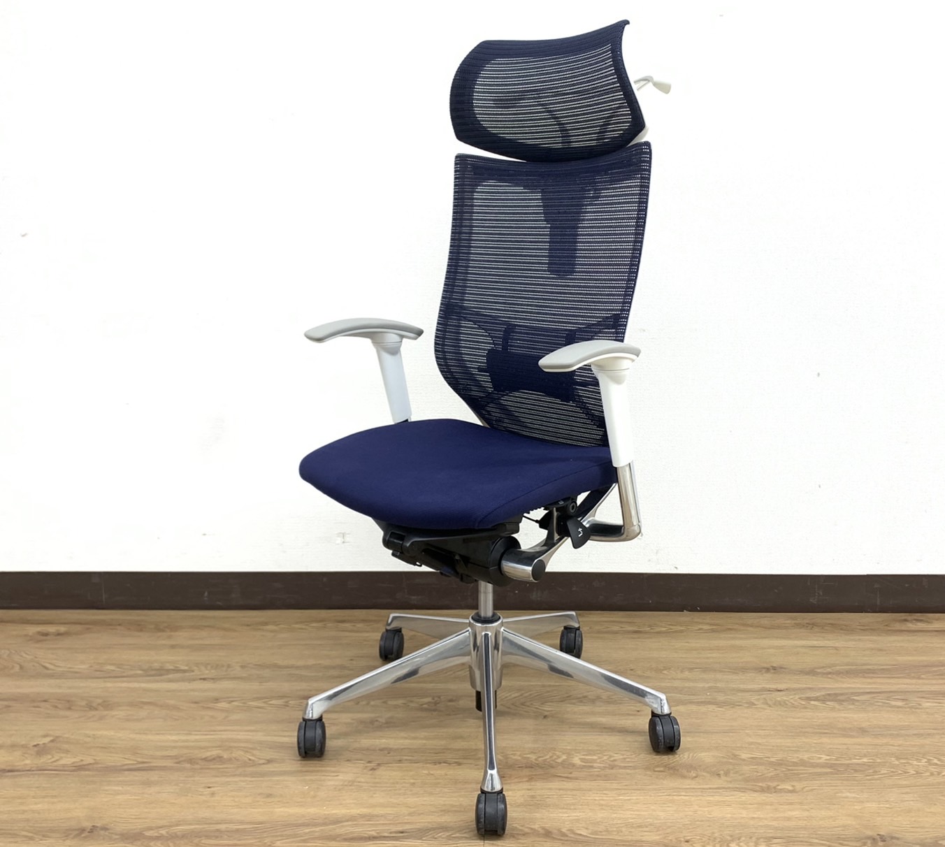 衰えしらずの高品質な大人気チェア!清潔感と爽快さを感じさせるブルー×ホワイト仕様! ■オカムラ/バロン/ダークブルー【AD】