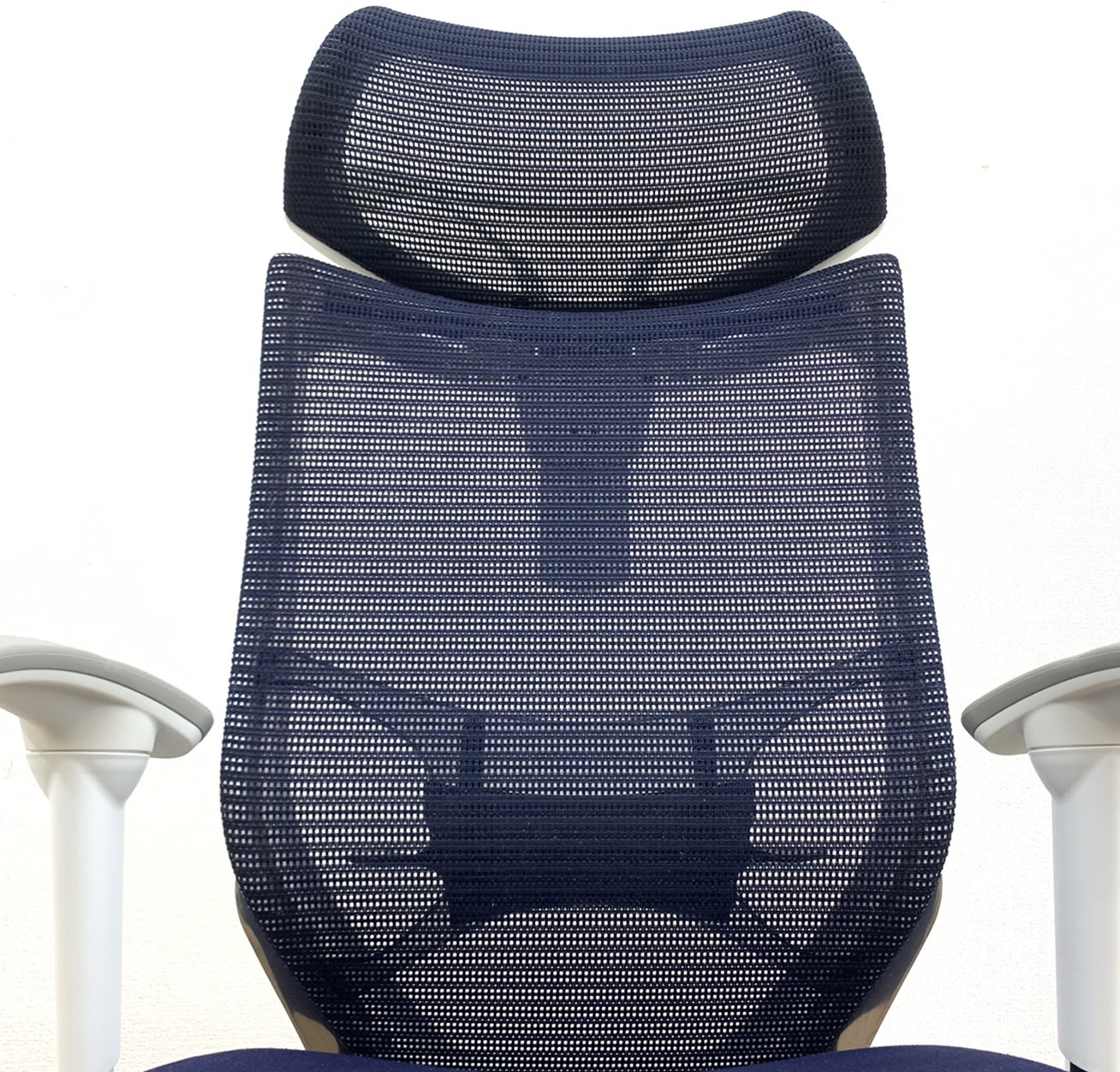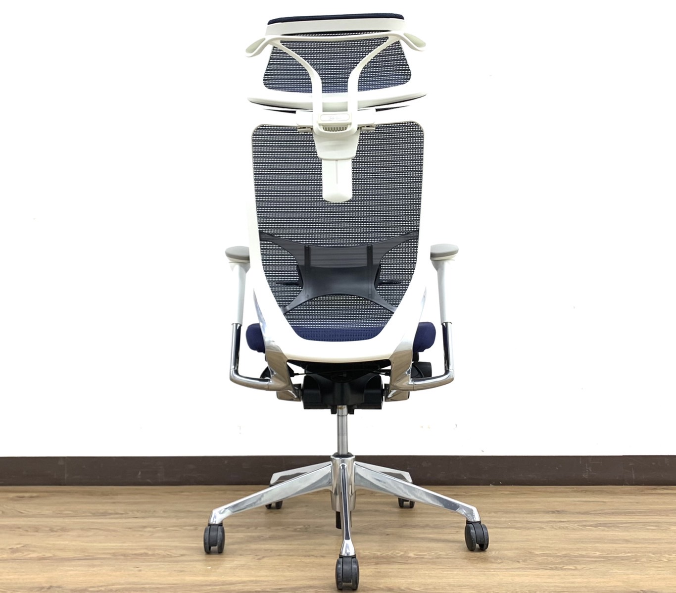 【新品ヘッドレスト付き】オカムラ/バロン/ブルー×ホワイト/可動肘/座面クッション【AD】
