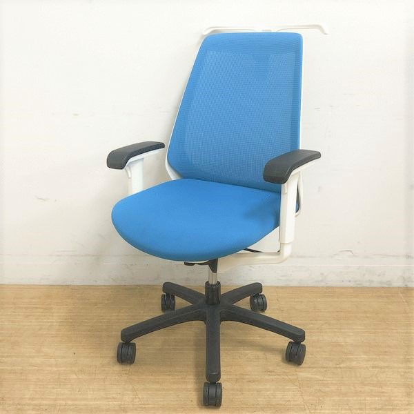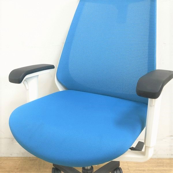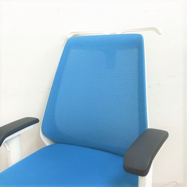 店長オススメ★やさしいデザイン コンパクト設計 イトーキ ノナ ストロングブルー色 アジャスタブル肘 ハンガー付き- 名古屋千種店