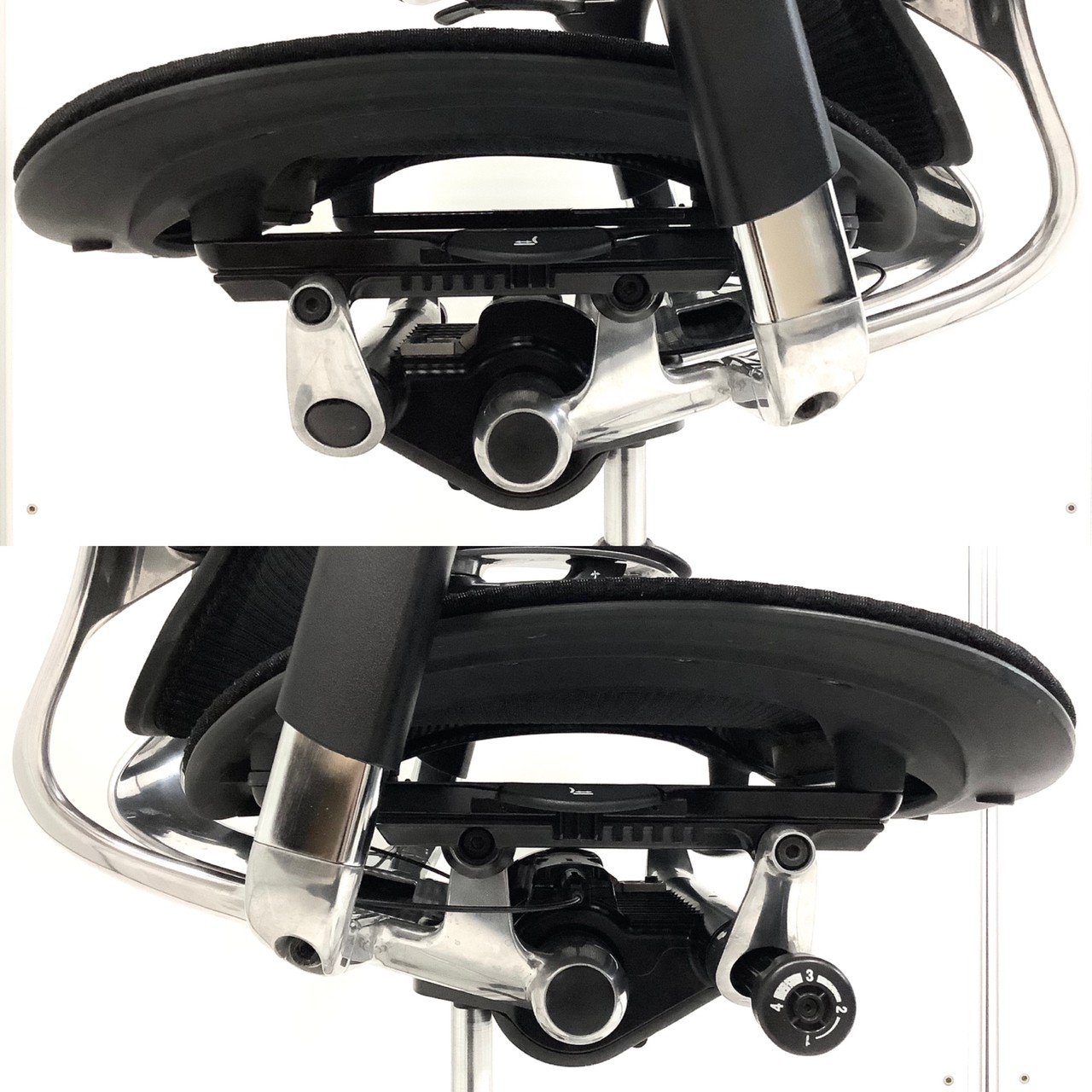 - 座面の前後スライド調整レバーで操作(前後50mm分調整で)できます。(グラデーションサポートメッシュタイプを除く)