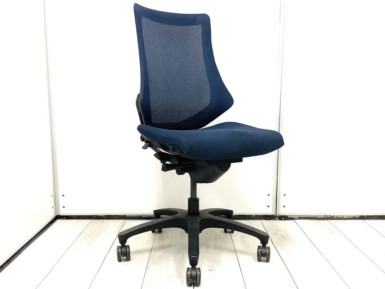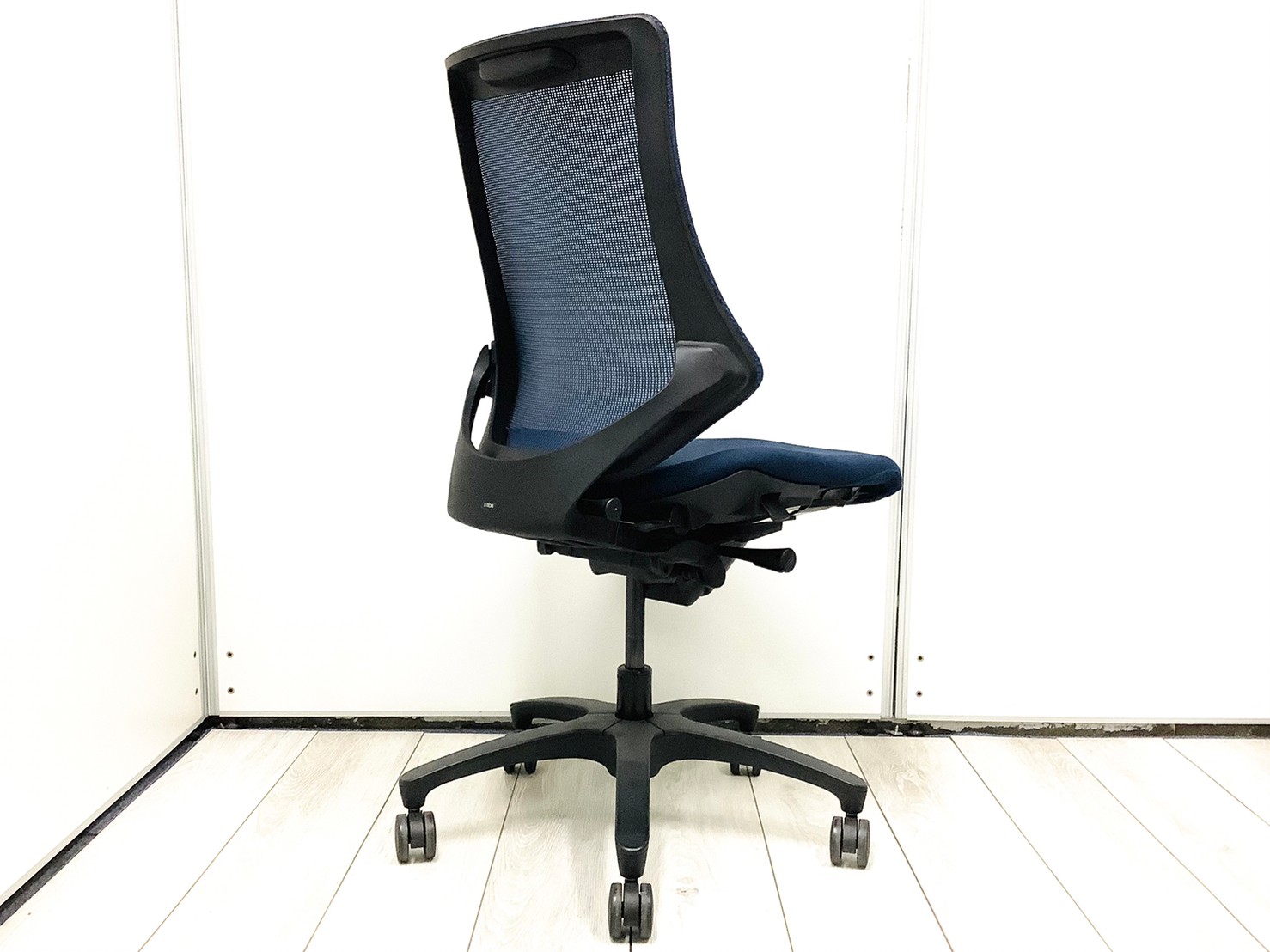 【姿勢の変化にフレキシブルに対応!座り心地も抜群な高機能チェア!】■イトーキ(ITOKI)製 エフチェア 肘無しハイバック クロスバックタイプ ■ネイビーブルー×ブラックシェル〈岐阜・愛知・三重・静岡・福井〉