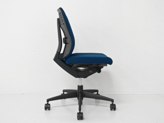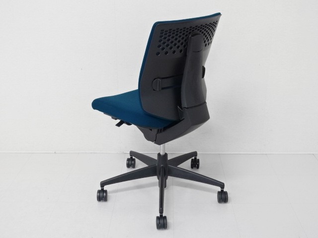 コクヨ ウィザード2 ローバック ロングセラーシリーズ プルシアンブルー×ブラックフレーム 肘無しモデル 定番の使いやすいチェア