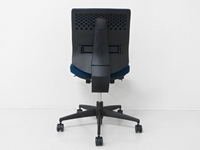 コクヨ ウィザード2 ローバック プルシアンブルー×ブラックフレーム 肘無しモデル コートハンガー付き 定番の使いやすいチェア オフィスバスターズ梅田本店