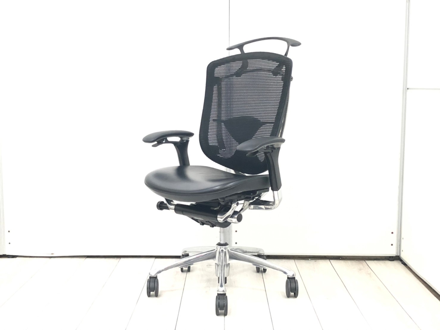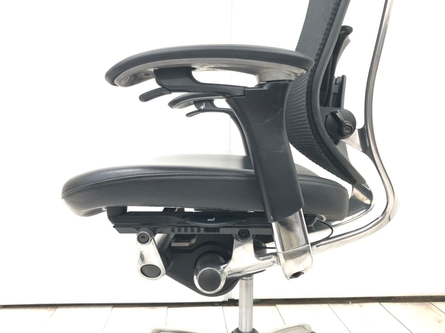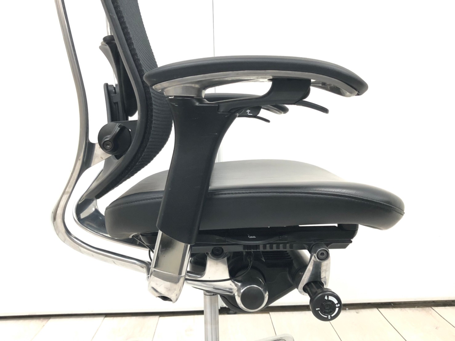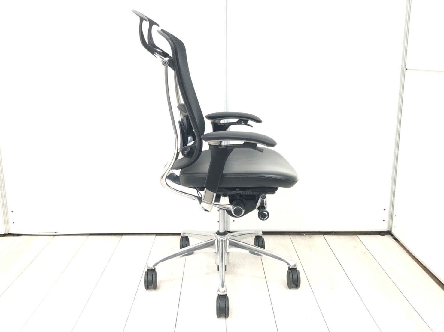 現品限り!現物を撮影し掲載しております! 【座面レザーの高級仕様】 ■オカムラ/コンテッサ/ブラック/革張り- 池袋店