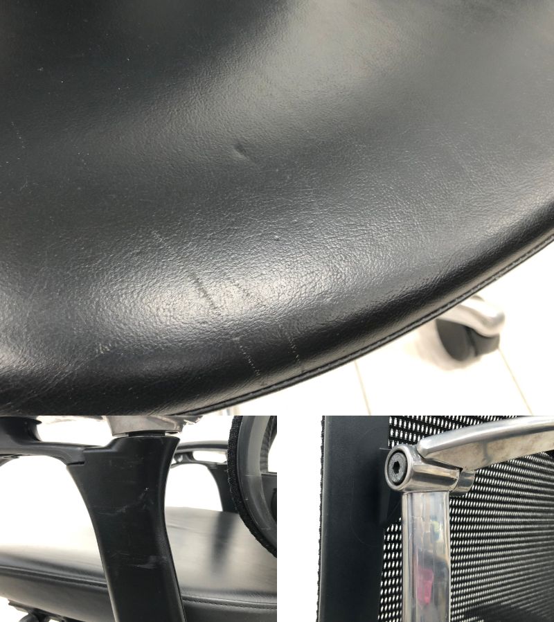 キズ:目立つ大きな傷無し、レザー特有の軽い座面ヨレあり