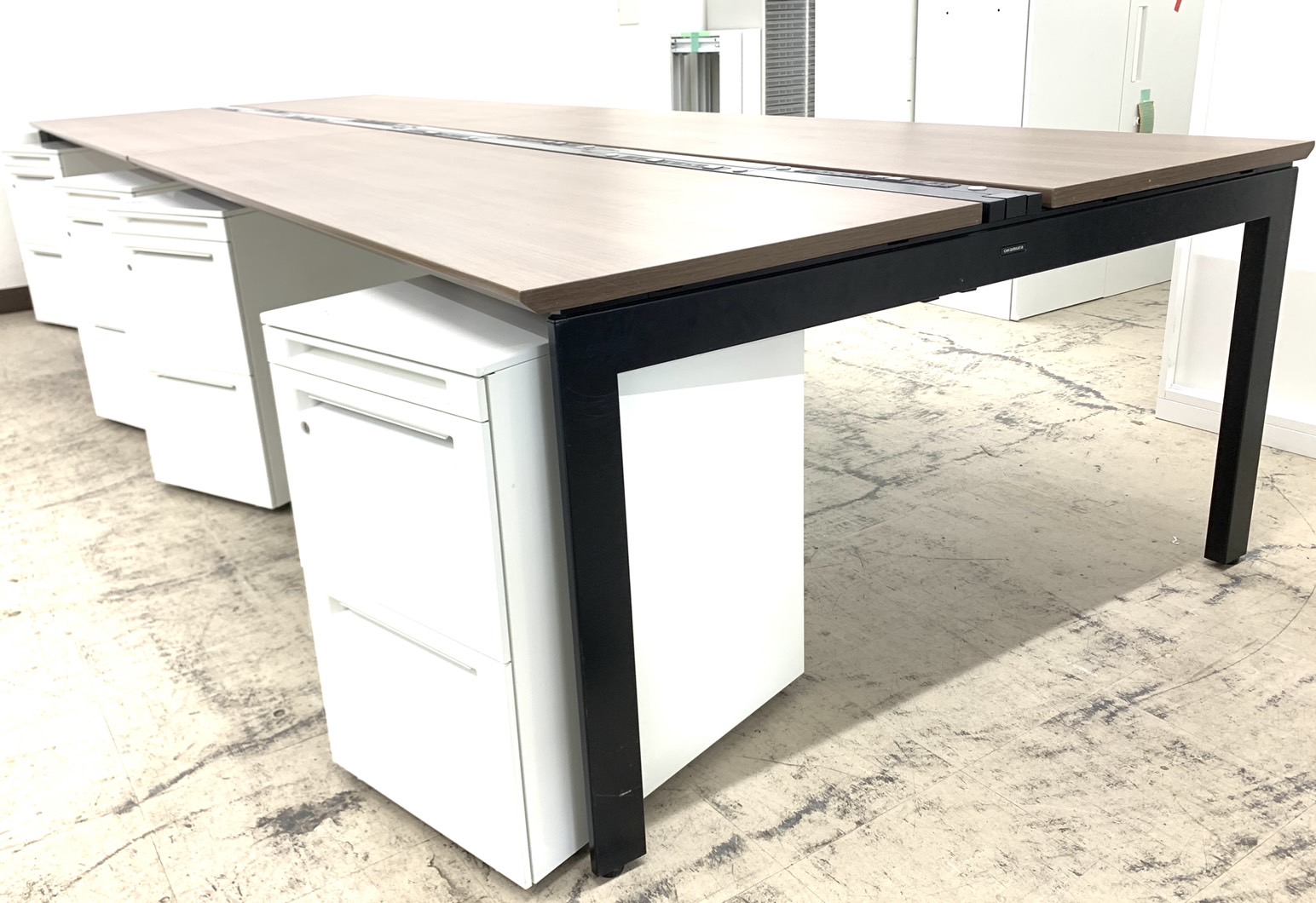 【幅4000㎜】レイアウト変更必須アイテムフリアドデスク&ワゴン4台セット※オープン脚ブラック仕様◆オカムラ製(MK39)【RP】- 埼玉本店