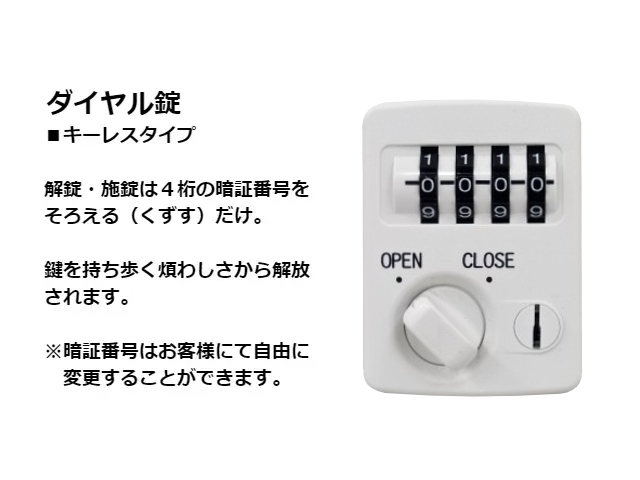 ・暗証番号だけで解錠するので鍵を所有する必要がなく、1台を複数名で使用することができます。