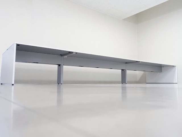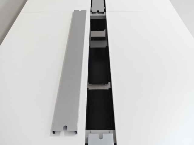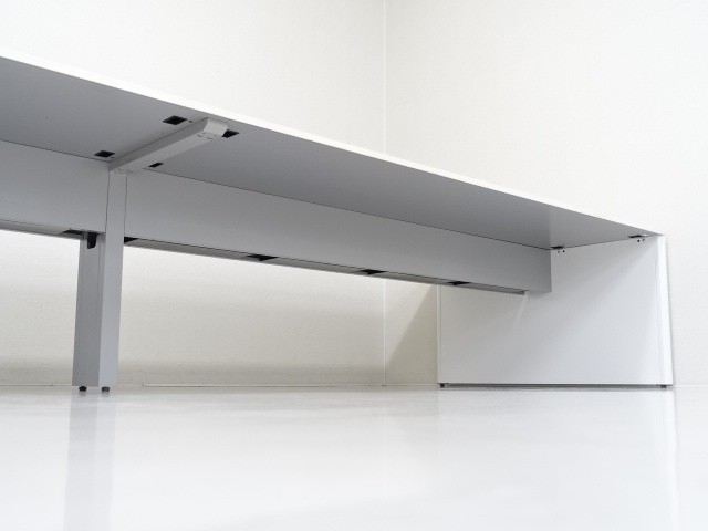 また、中間脚が内側に付いている為、中間脚部(天板連結部)にもワゴンを設置する事が出来ます。