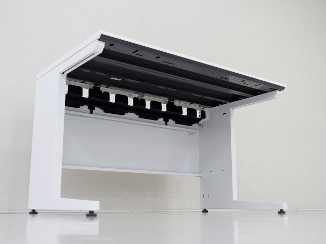 - 地震時、センター引出しが飛び出さないよう、ラッチ機構を装備。脚はデスクの横ズレを軽減させる設計になっています。