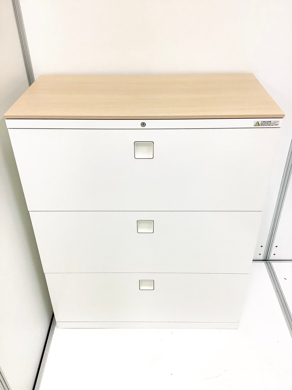 【ナチュラル天板(ネオウッドライト/MK37)付き!】オカムラ製 3段引き出し ラテラル書庫 レクトライン ホワイト【カフェ風オフィスに最適!カウンターとしてもおすすめ】- 足立・葛飾店