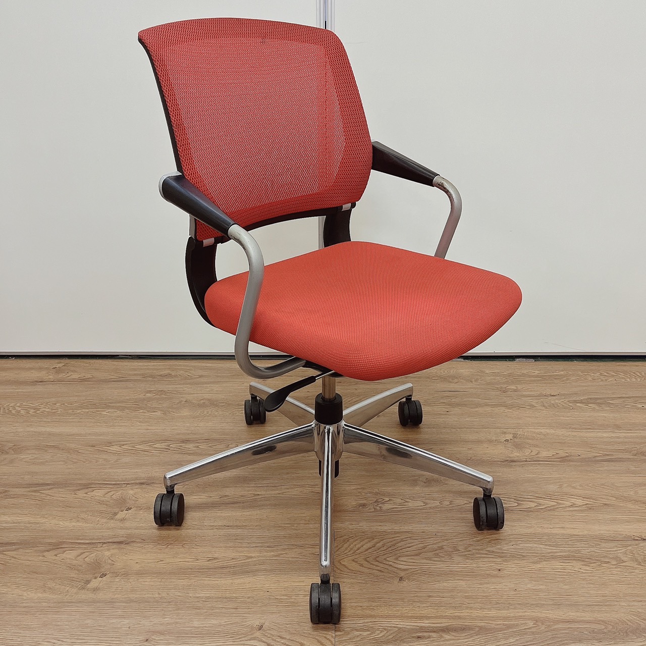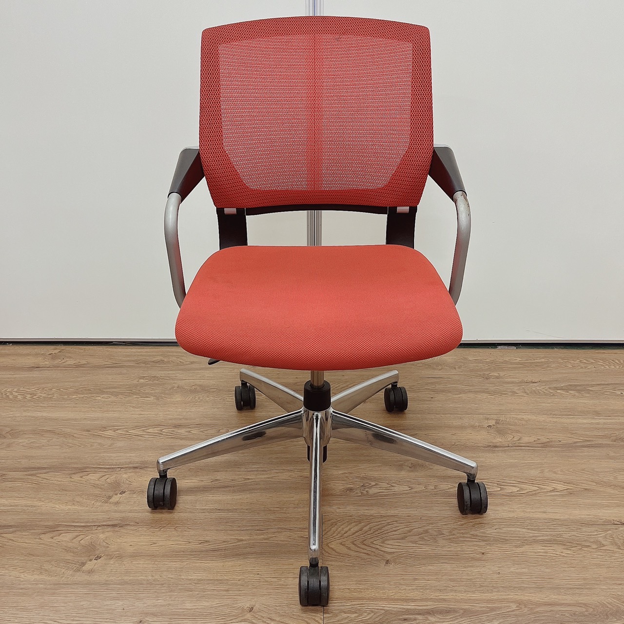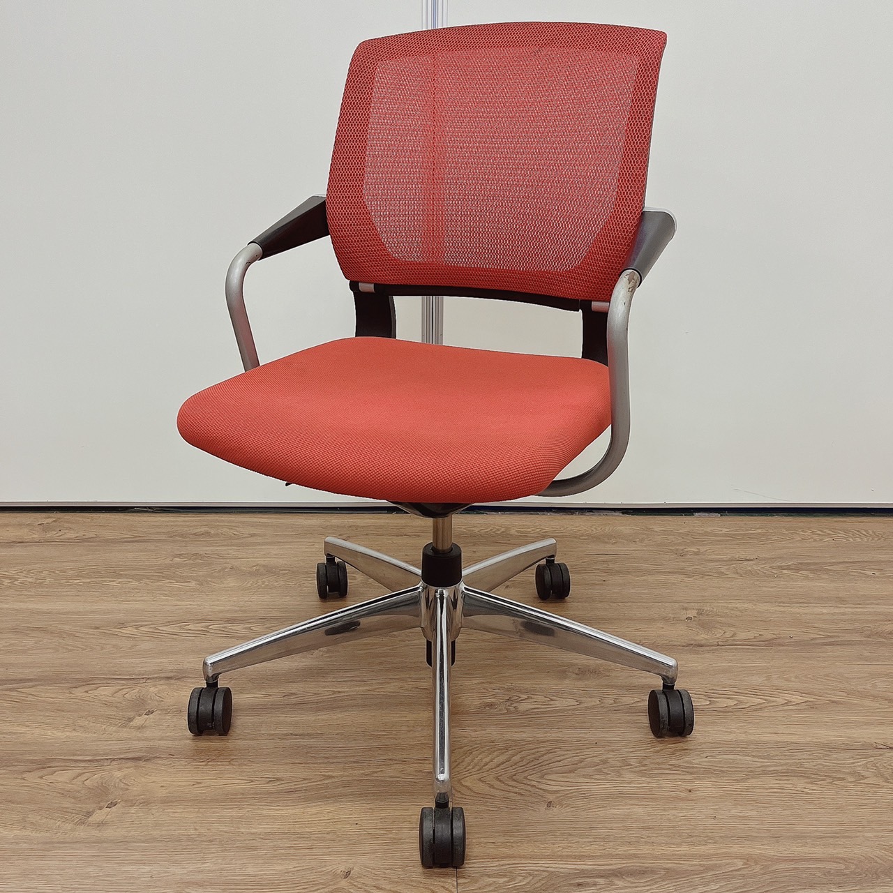 【在庫入れ替え】 コクヨ サテリテチェア ネスティングチェア レッド キャスター付き オフィス 会議 ミーティング 収納 取って部分に少々サビ有- 大阪梅田本店