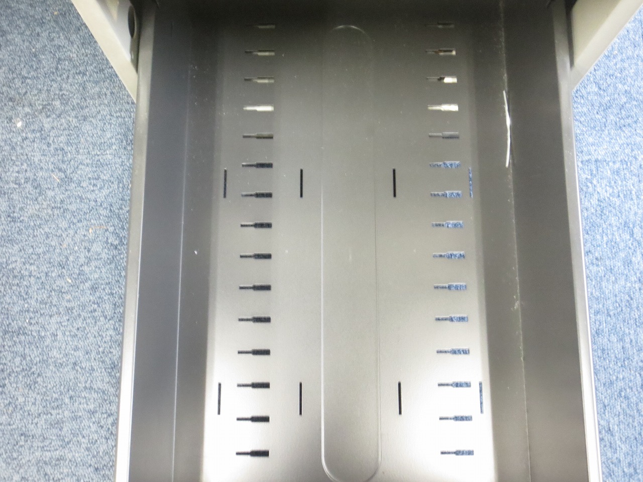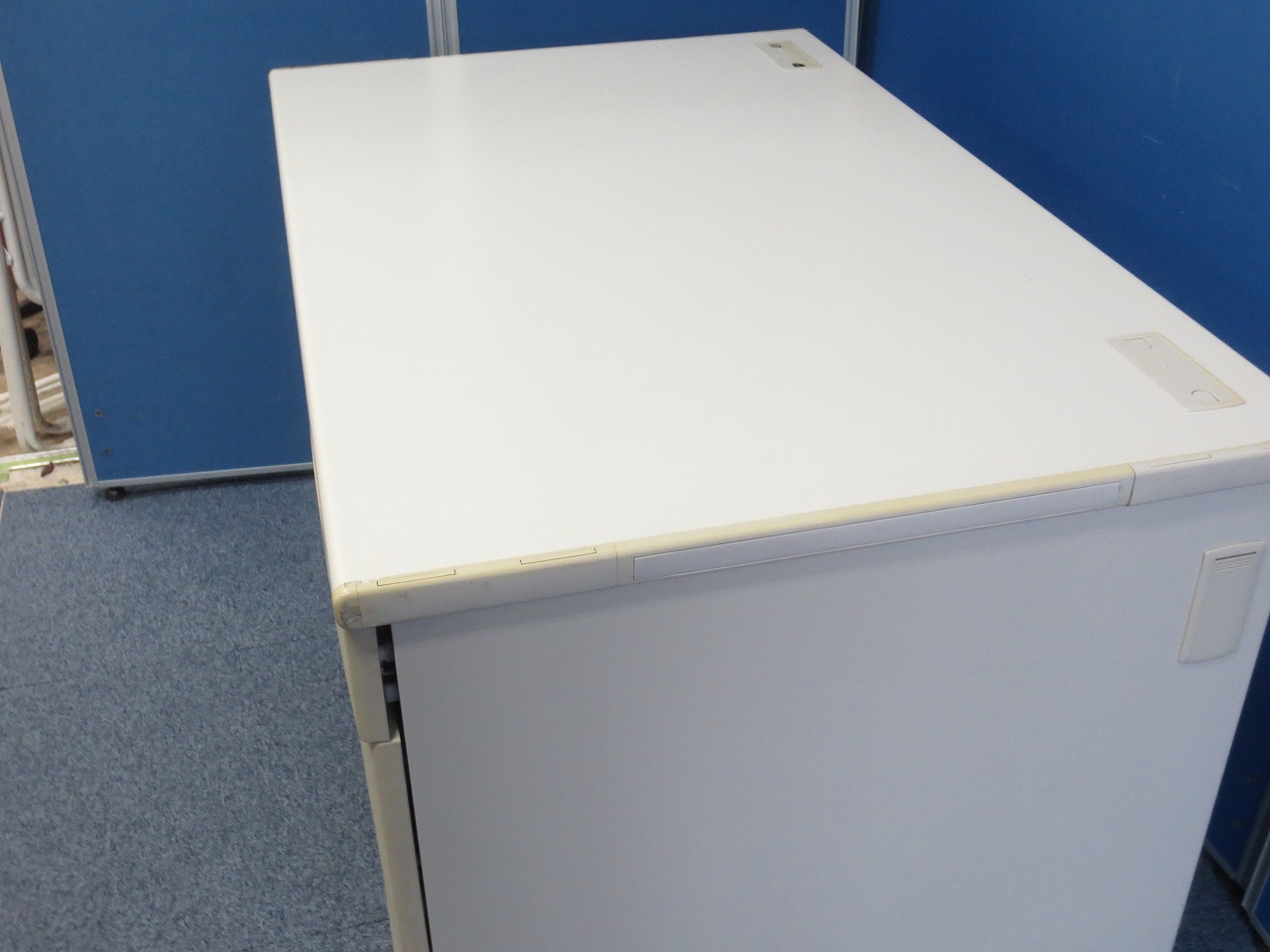 - 袖机のワゴンは、最下段がロング引出しになっており、従来より収納力120%アップ。