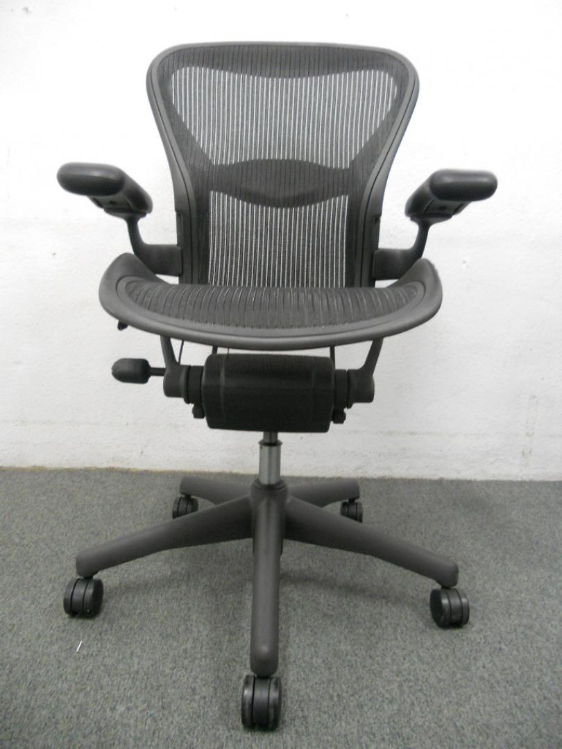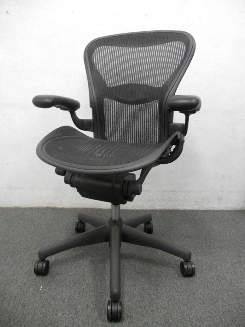 【★状態イマイチのためお安く!】■ハーマンミラー製 アーロンチェア Bサイズ 固定肘 ※キズあり・ランバーサポート無・昇降ガス圧弱めのためお安く!【訳あり特価品】