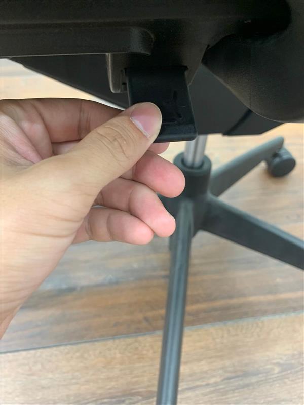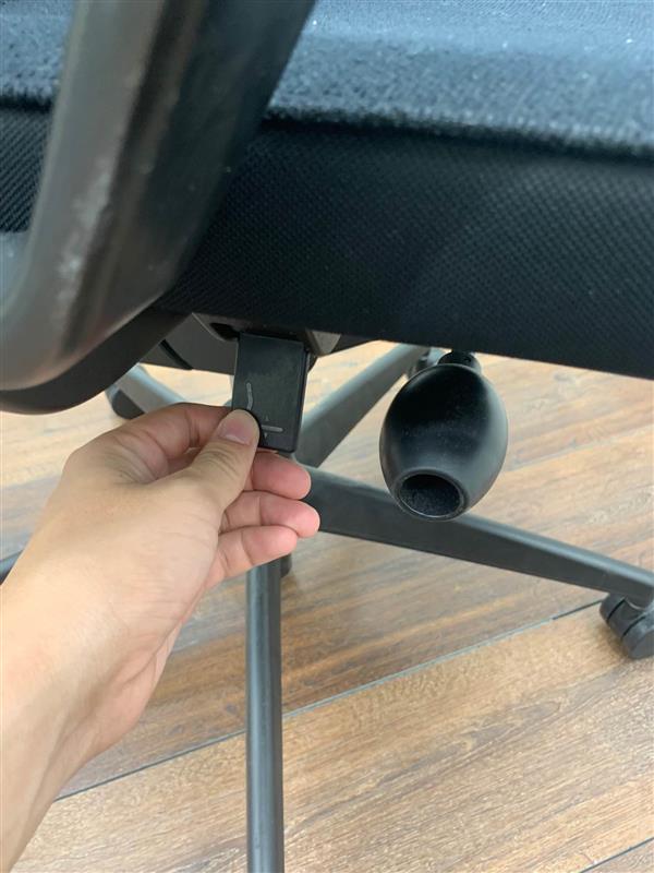 ロッキングは、任意の位置でロックすることが可能で、強さの調節は座面右下のグリップで座った状態で行えます。