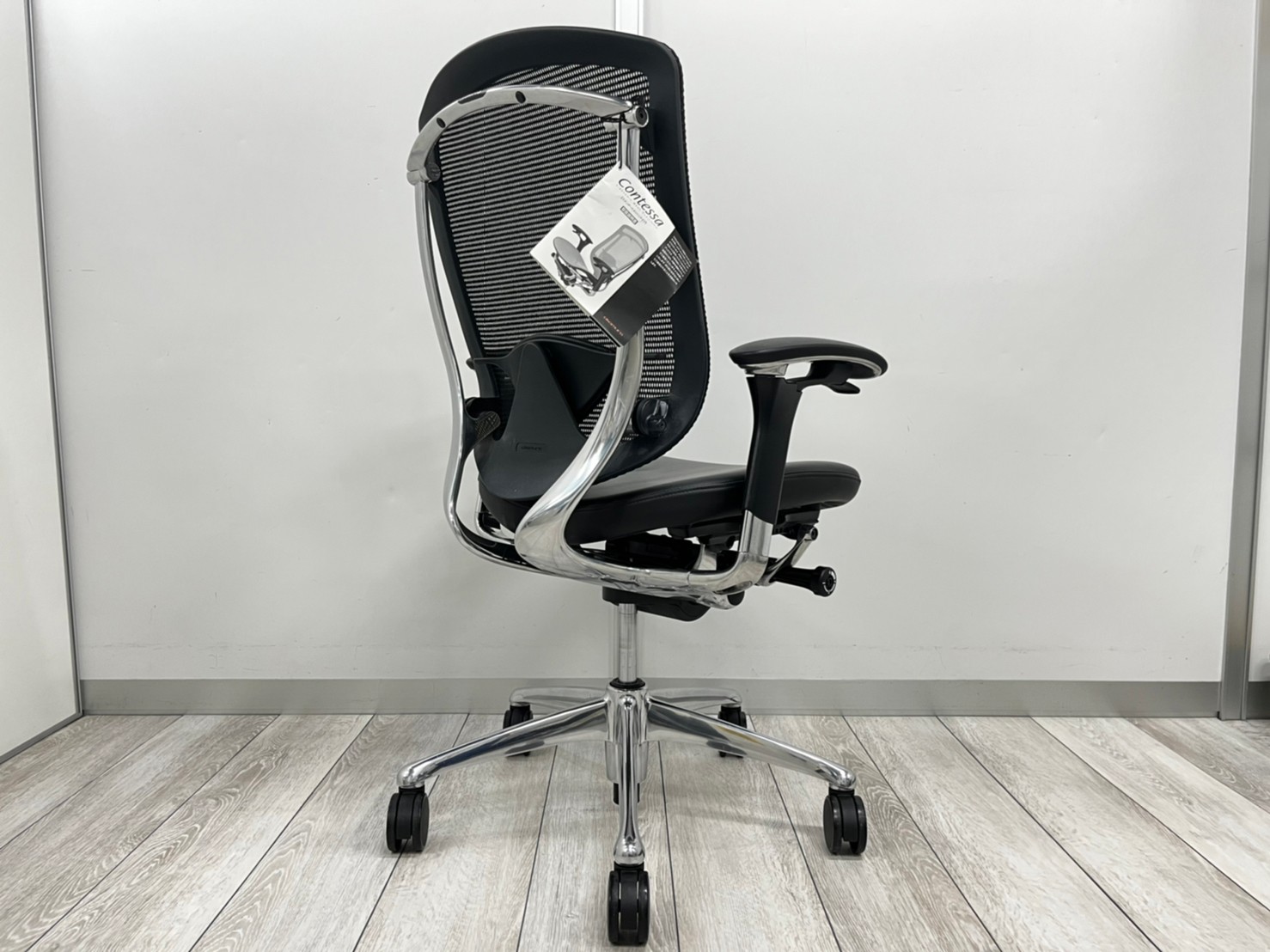 【世界で認められた革新的タスクチェア!人間工学に基づいた快適な座り心地を実現!】■オカムラ(okamura)製 コンテッサ(Contessa)チェア ハイバック 肘付き 背面メッシュ ■可動肘・ランバーサポート付 ■ブラック ※肘スレ有