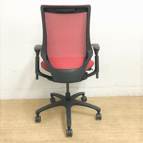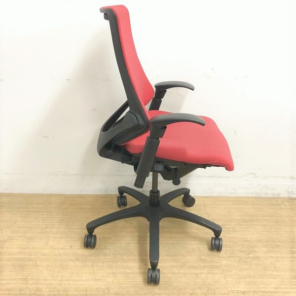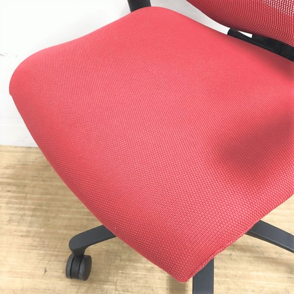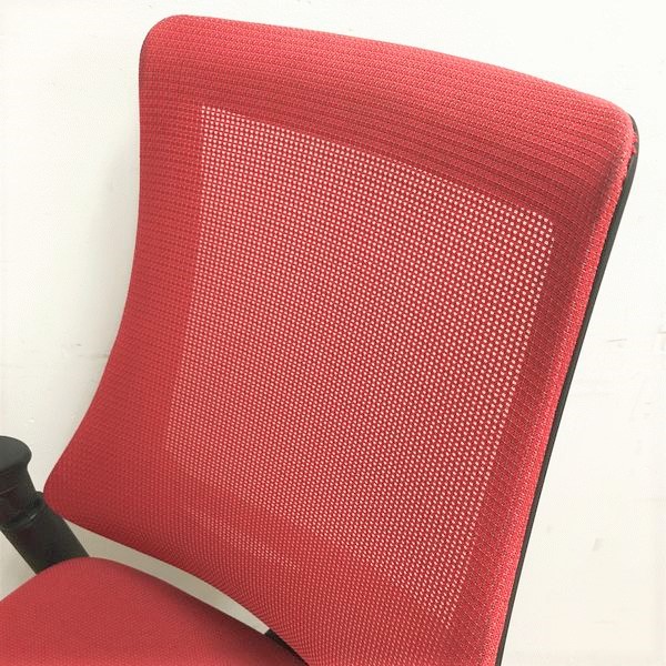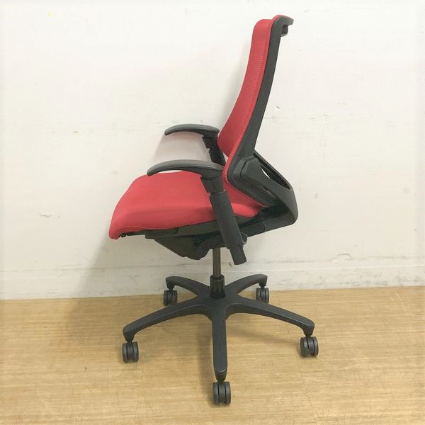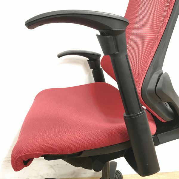 【在庫入替価格20%オフ】イトーキ エフチェア ハイバック(プレーンメッシュ) ラズベリーレッド×ブラック アジャスタブル肘- 名古屋千種店