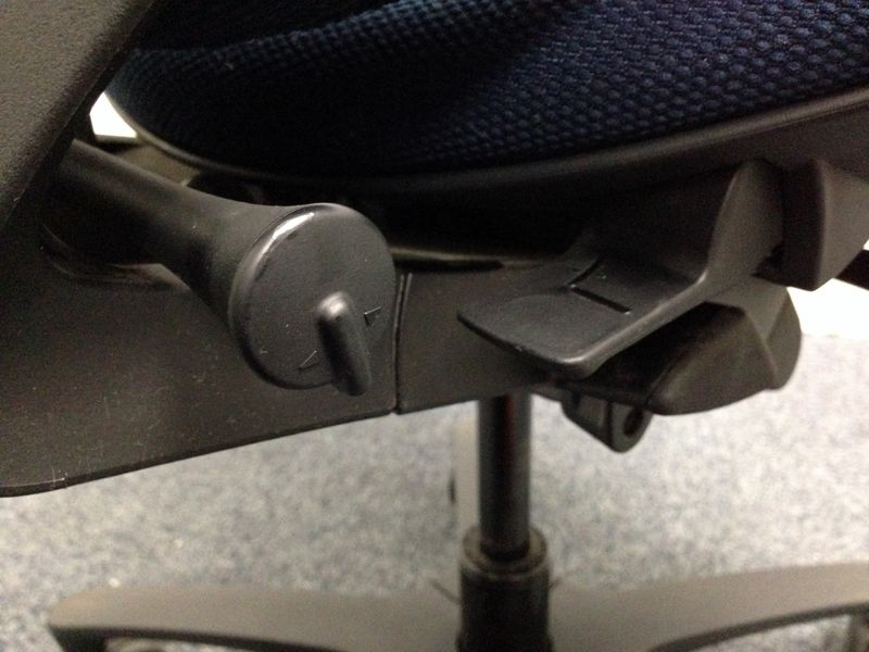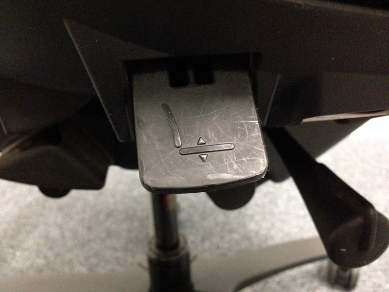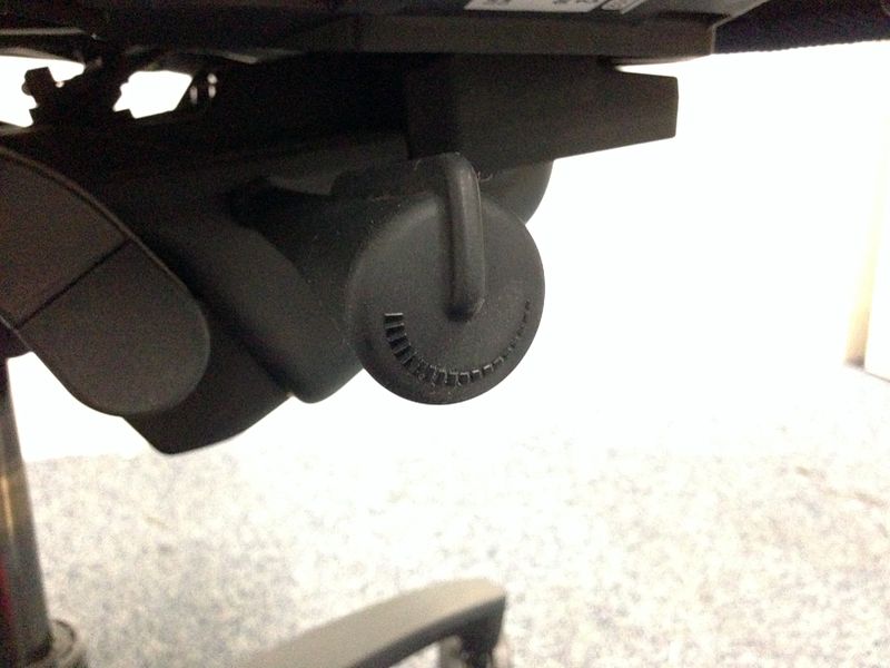 座面下のレバー操作により、体格に合わせたポジショニング設定が座った状態で可能。