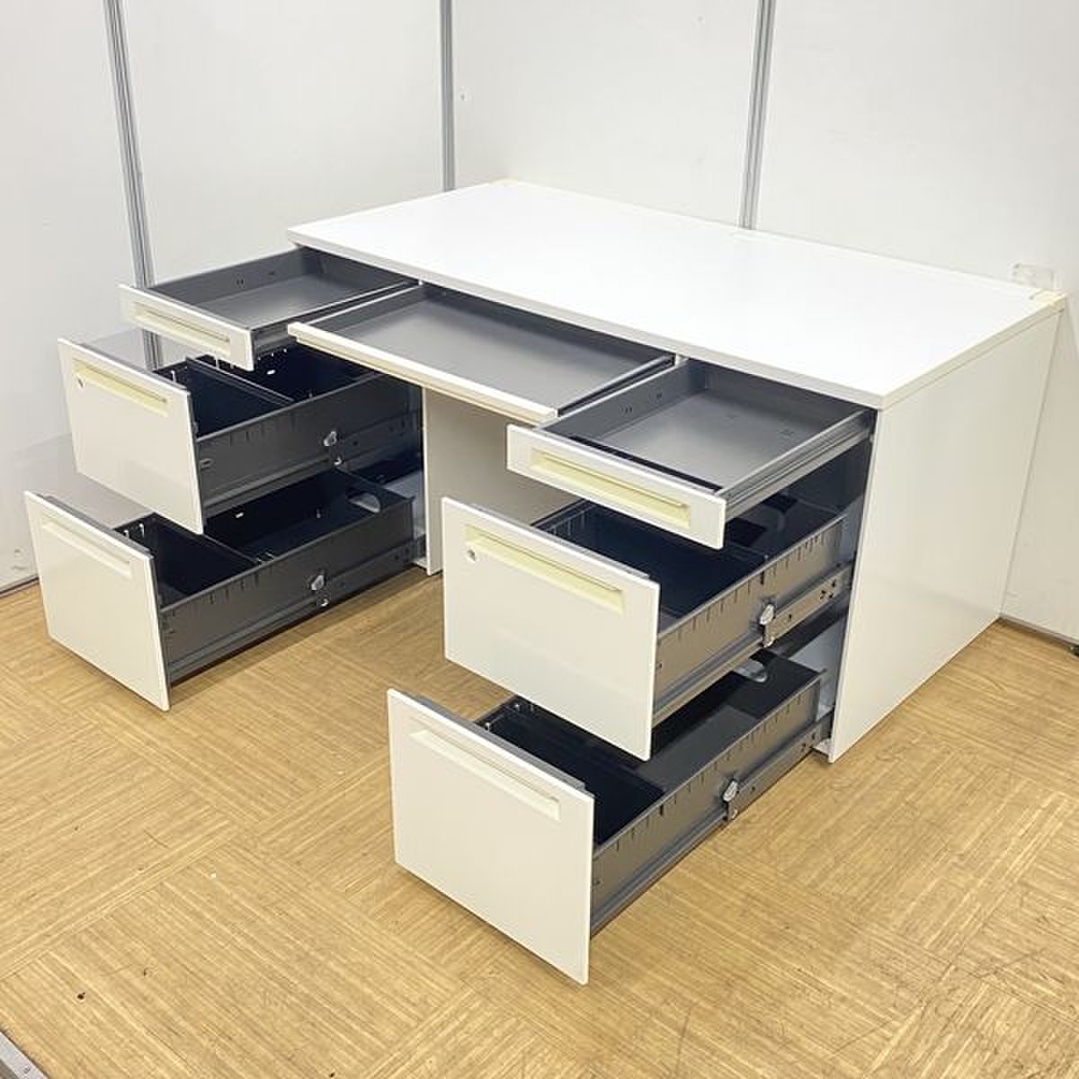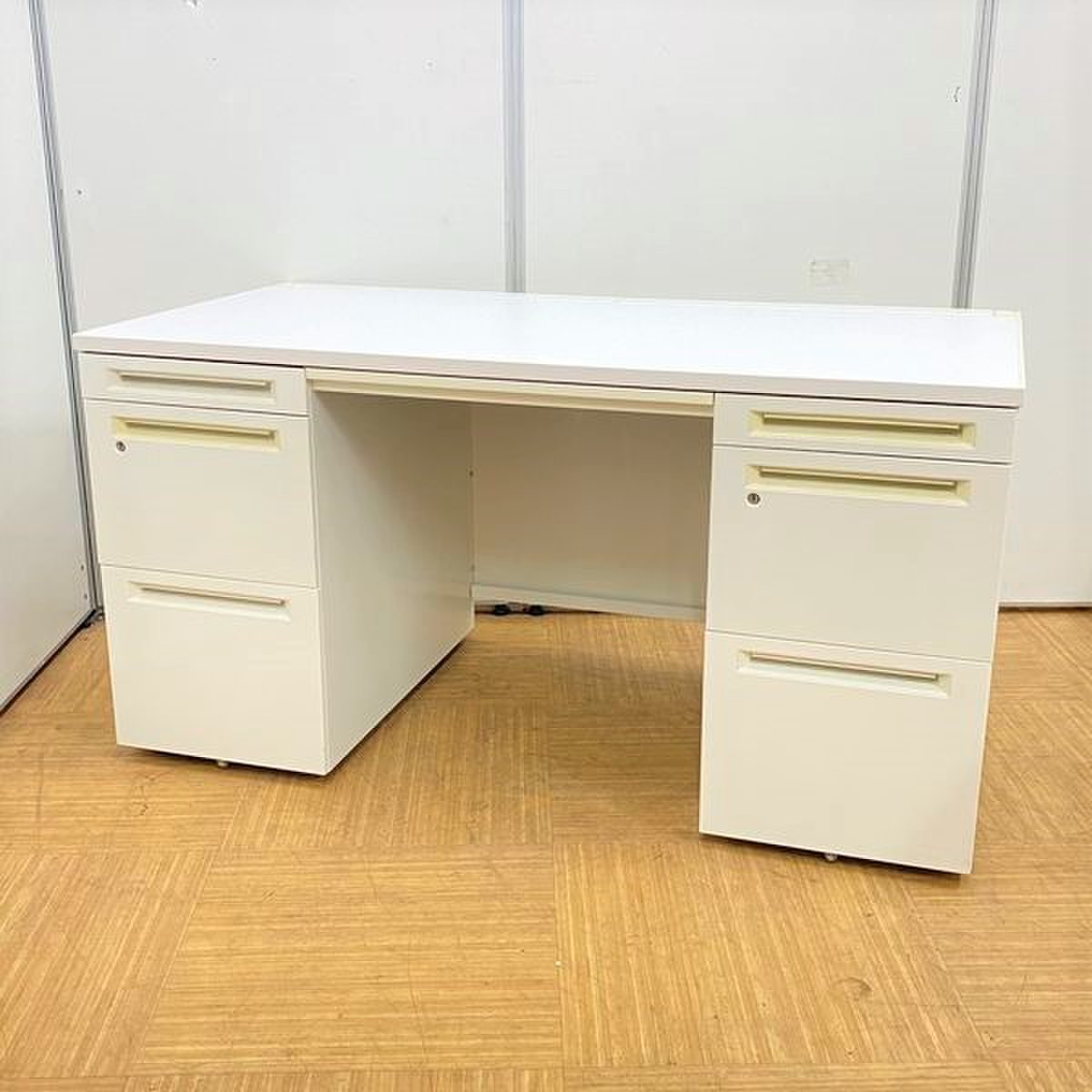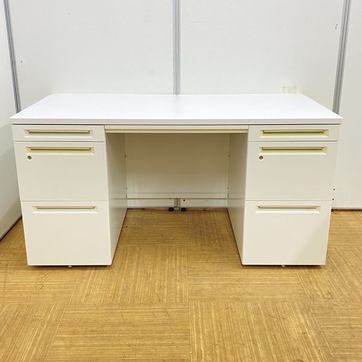 定番/大人気/希少 オカムラ(okamura)製 アドバンス 両袖机 幅1400㎜ ■ホワイト ■シリンダー錠