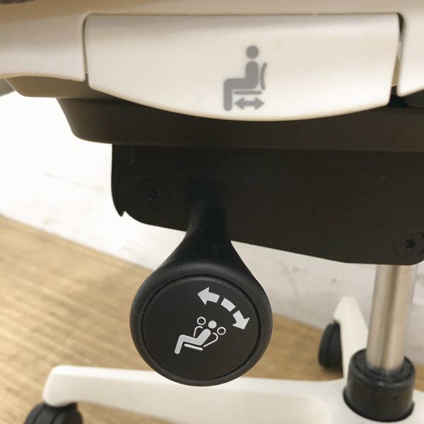 - 座面右下のダイヤル操作で、リクライニングの強弱調整が行えます。これまでのダイヤル式よりも、少ない回転数で、最弱?最強の調整が可能です。