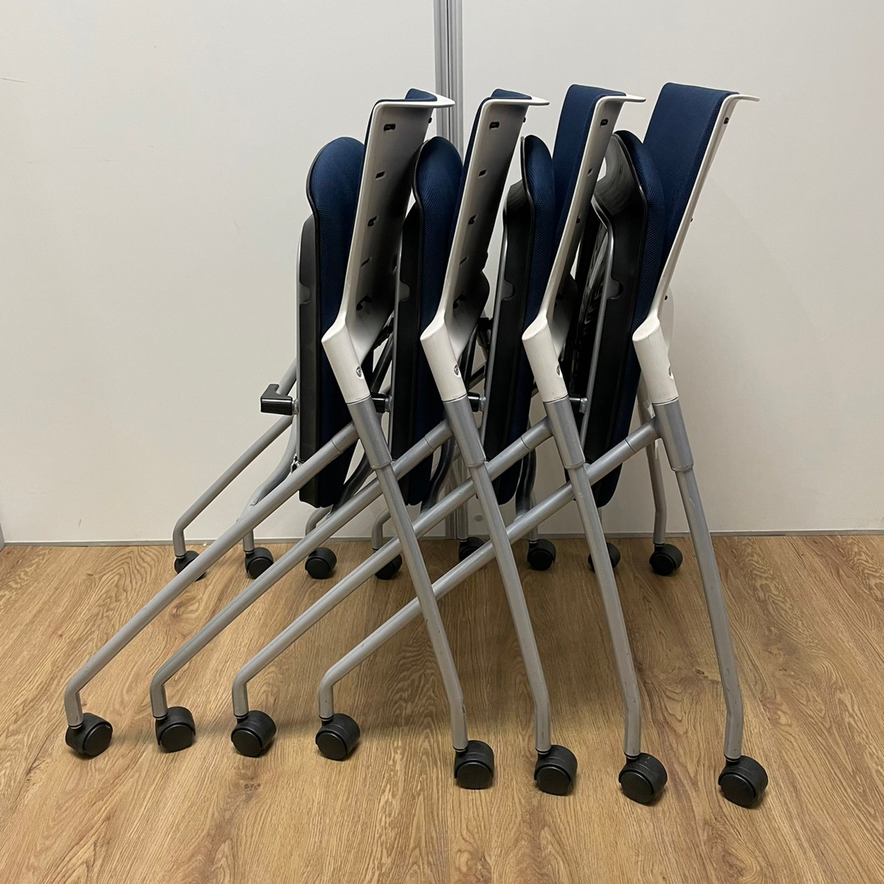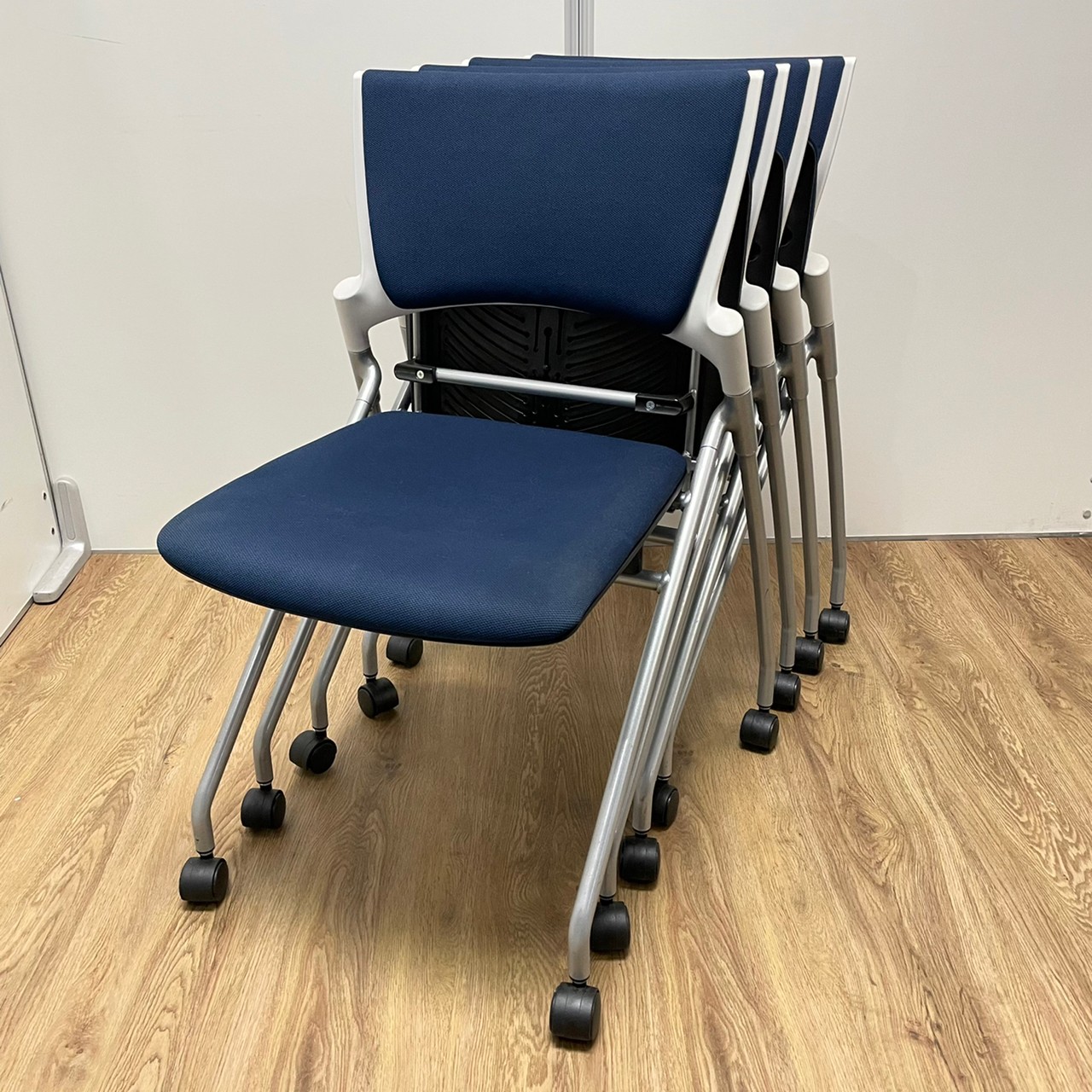 【4脚セット】イトーキ製 マノスシリーズ ネイビーブルー ネスティングチェア!!- 京都東寺店