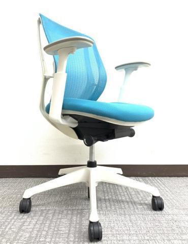 【前傾チルト機能付き】【オカムラ製品で最も人気を集める高機能チェア!】■オカムラ(okamura)製 シルフィ(Sylphy)チェア 肘付き ローバック ファブリックタイプ ■固定肘・ハンガー付き ■ブルーグリーン ×ホワイトシェル