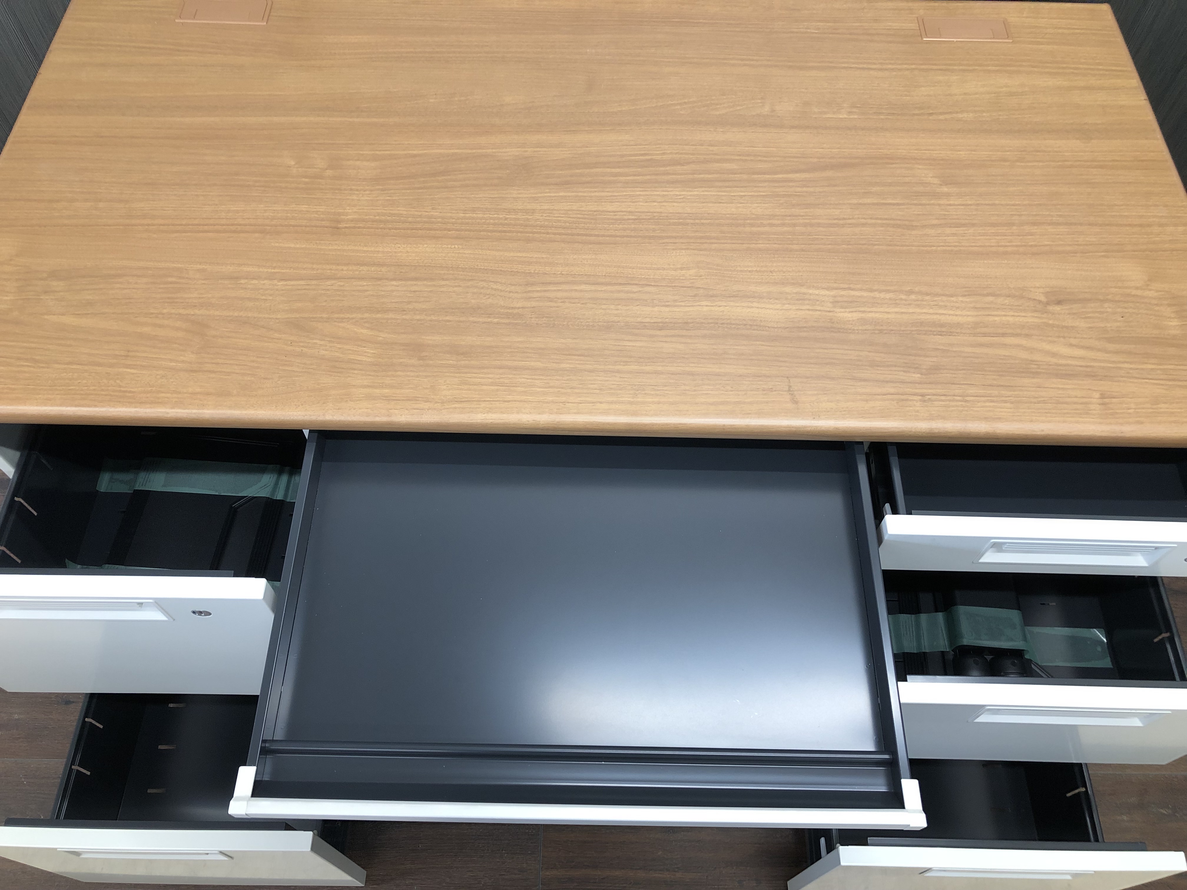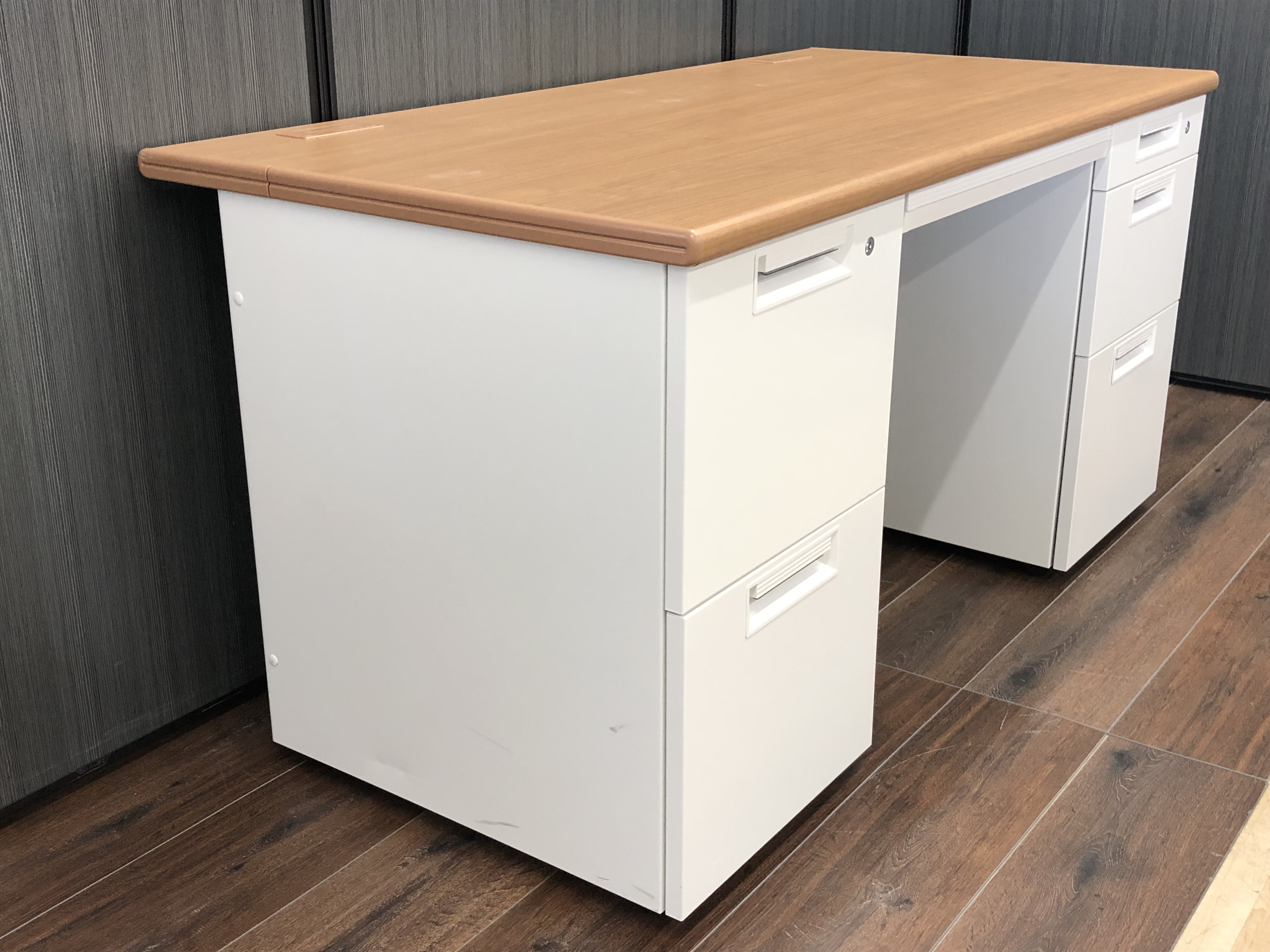 【4台入荷】【幅1400mm】役職者さまおススメ両袖机!渋い!ミディアムウッドカラー天板※本体ホワイト◆プラス製【RP】- 埼玉本店