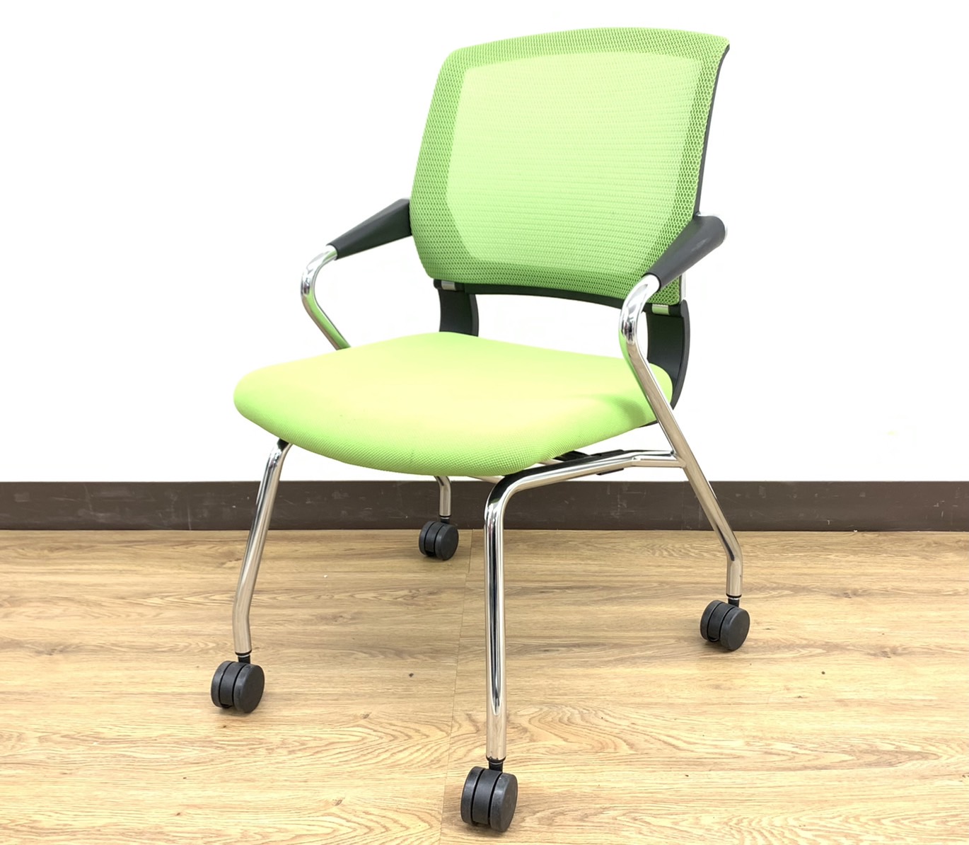 【2015年製】【6脚入荷】商品入替セール!会議室休憩室おすすめ!ネスティングタイプ&ヴィヴィッドグリーンサテリテチェア◆コクヨ製【RP】- 埼玉本店