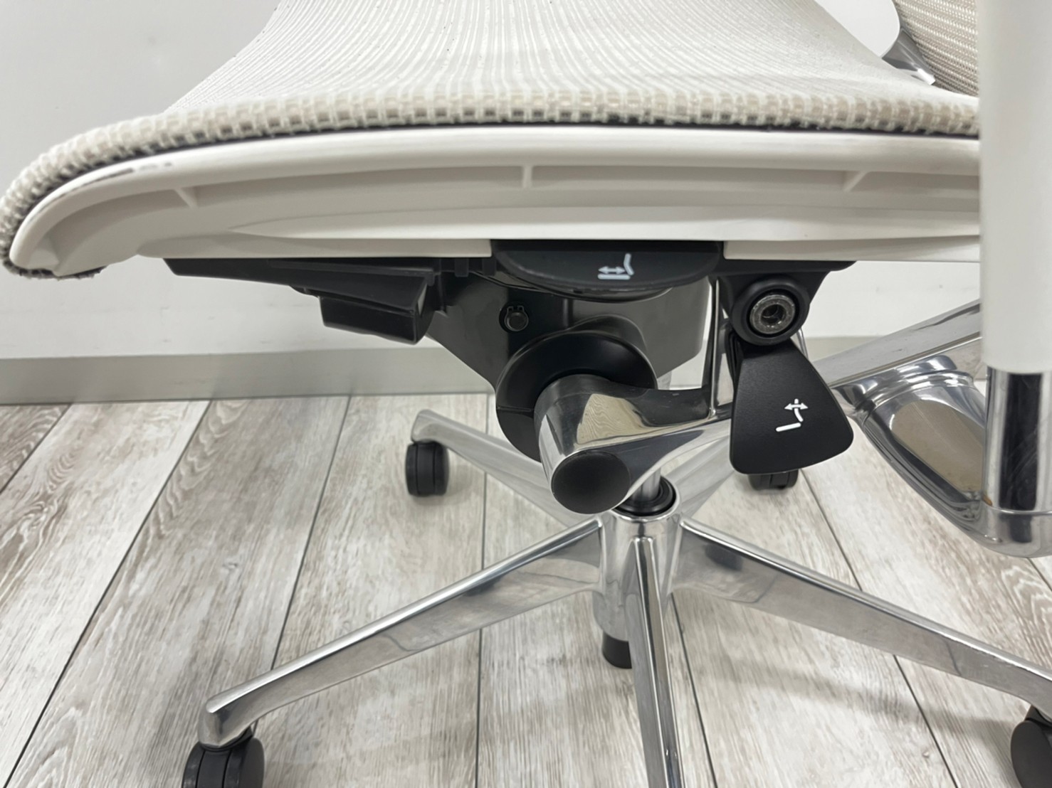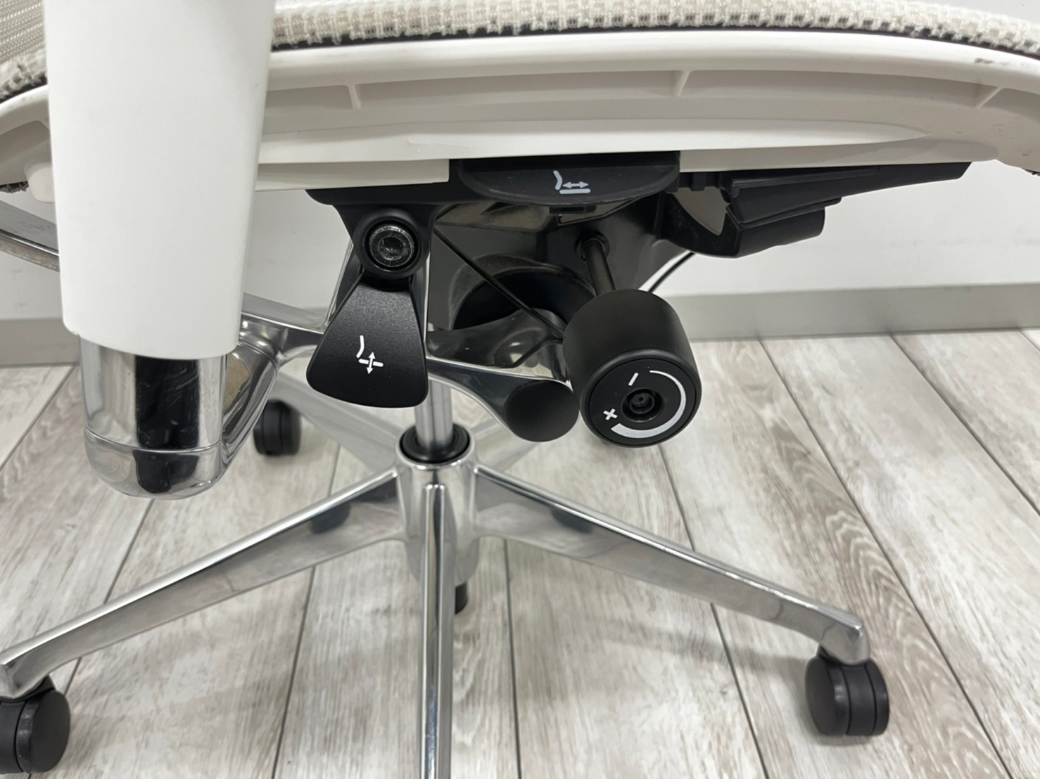 もちろん座り心地もコンテッサの直系ですから快適です。座面の素材はクッションとメッシュの2タイプあります。私、個人的には座面の中心部分でも外側でもテンションが変わらないクッション素材が、足を閉じても開いても快適なので推しです!"