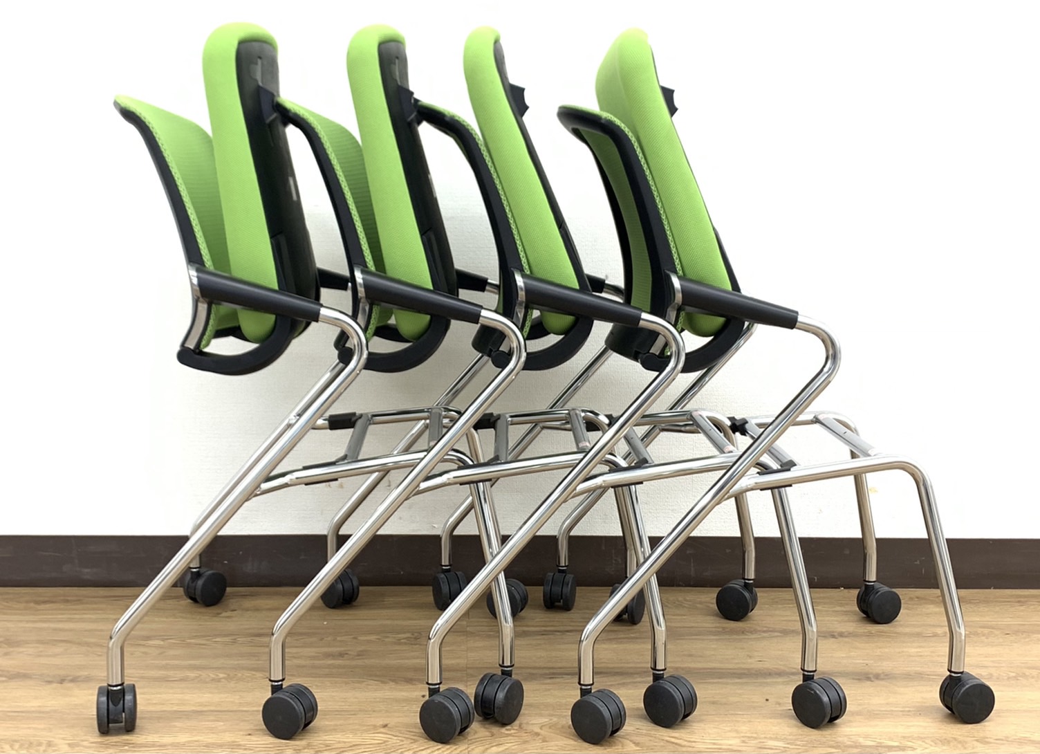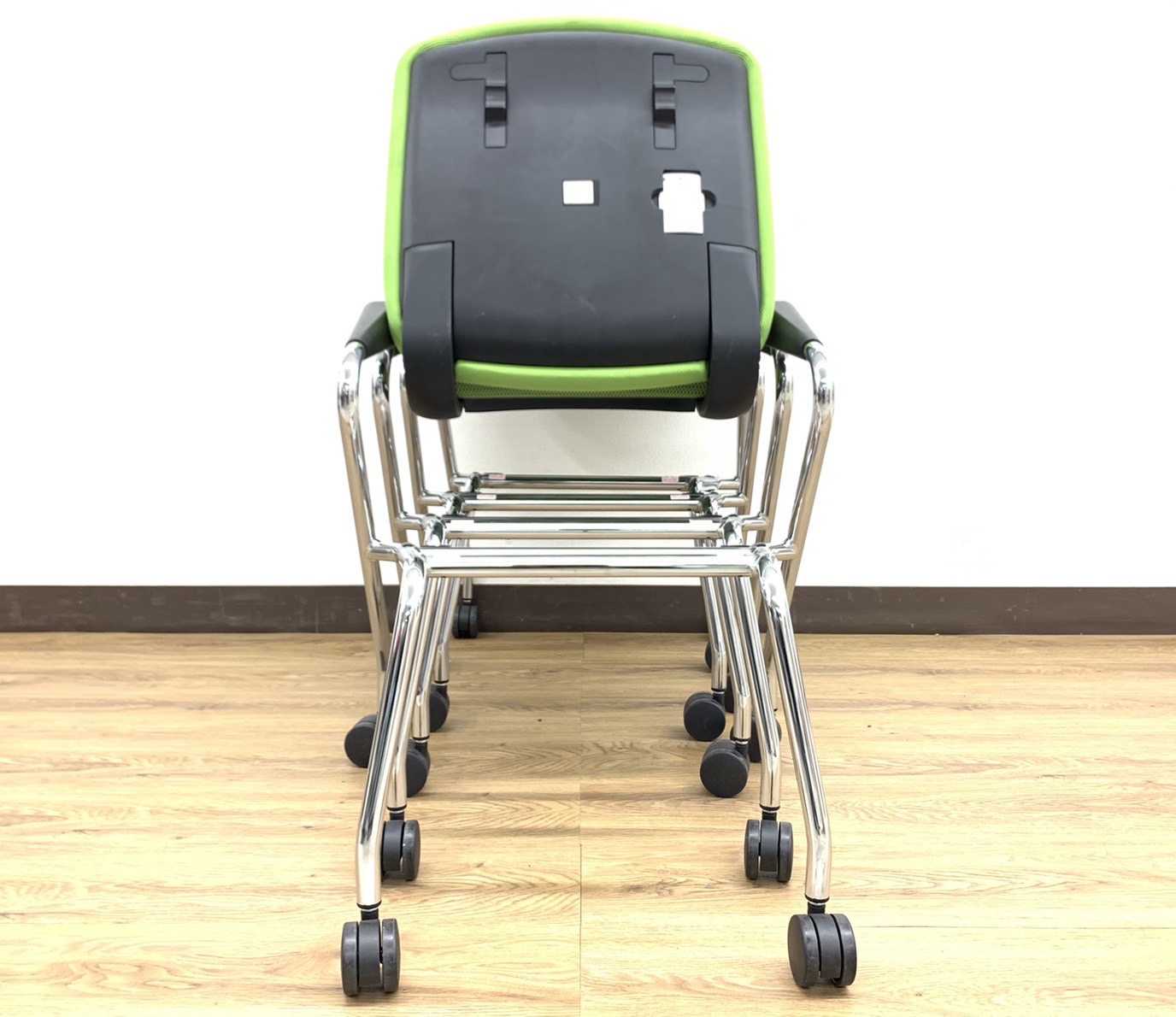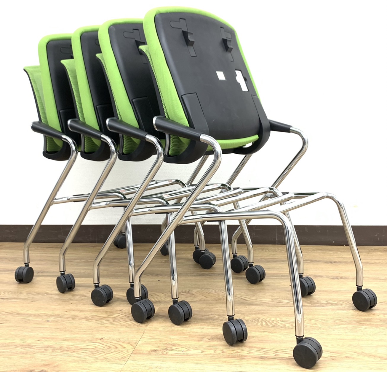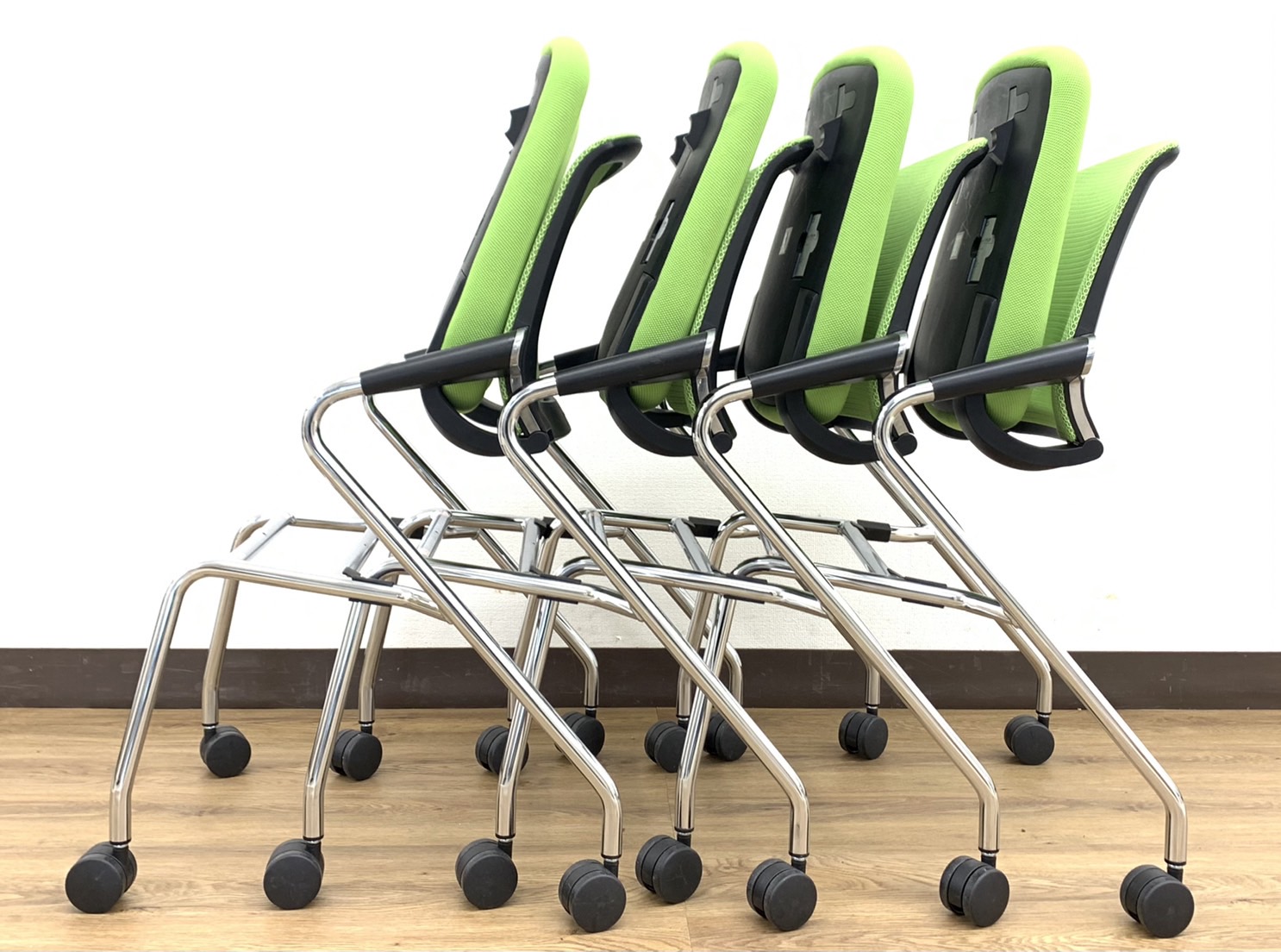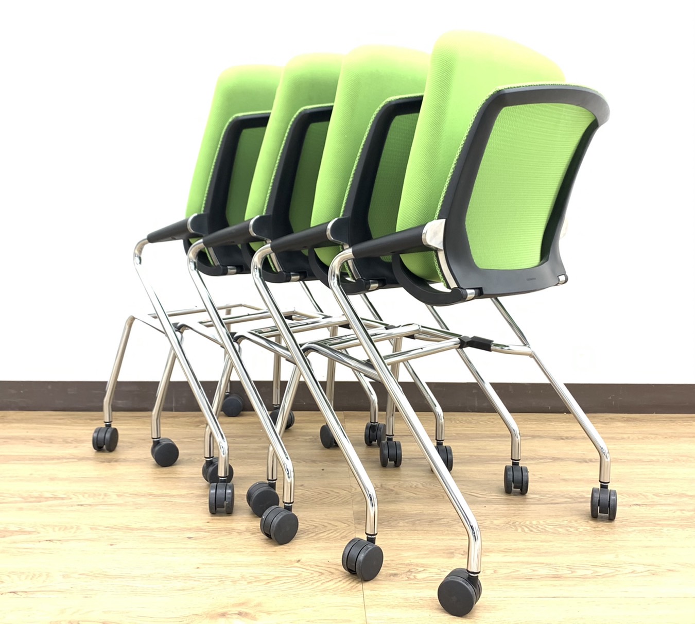【2015年製】【4脚セット】会議室休憩室おすすめ!ネスティングタイプ&ヴィヴィッドグリーンサテリテチェア◆コクヨ製【RP】- 埼玉本店