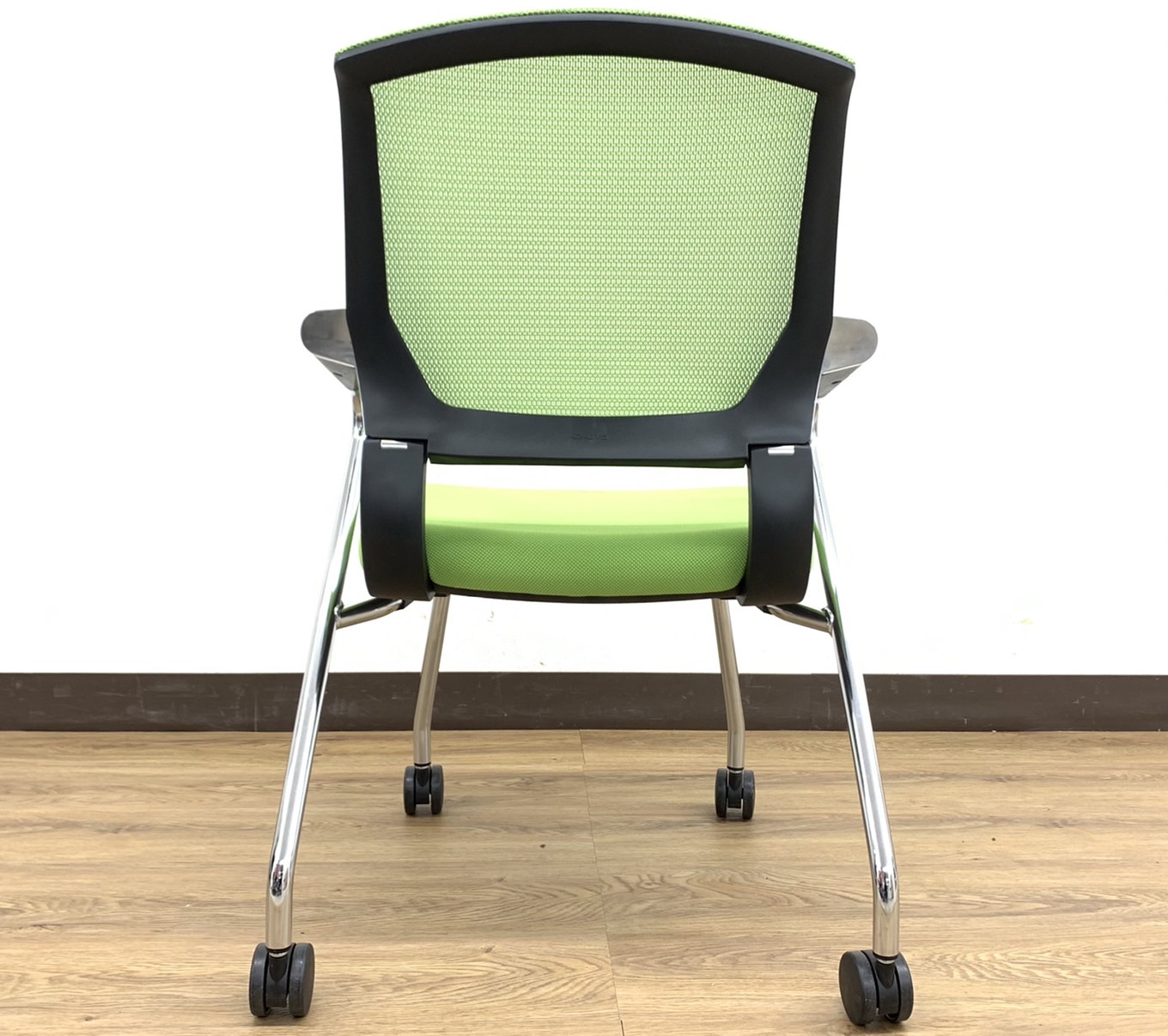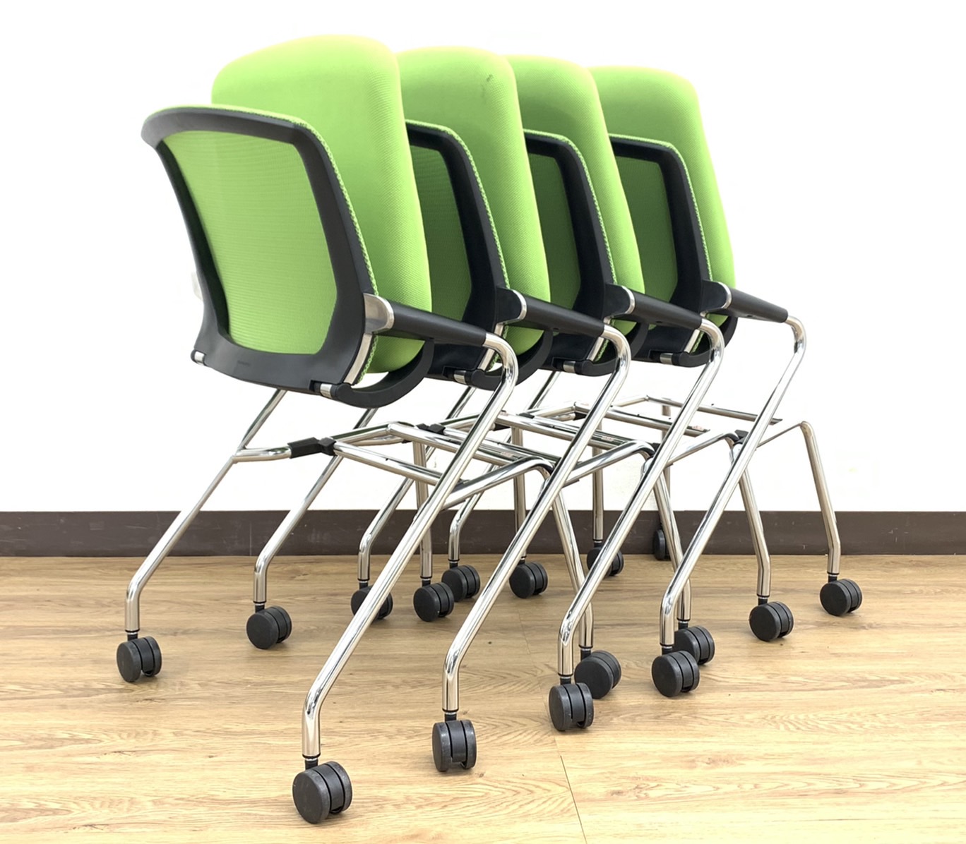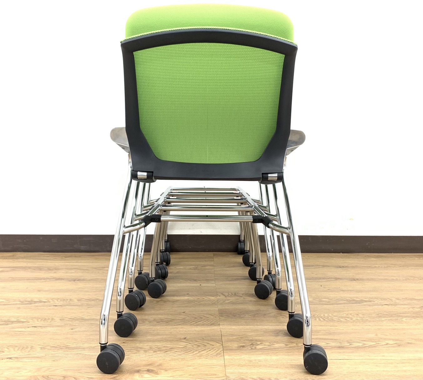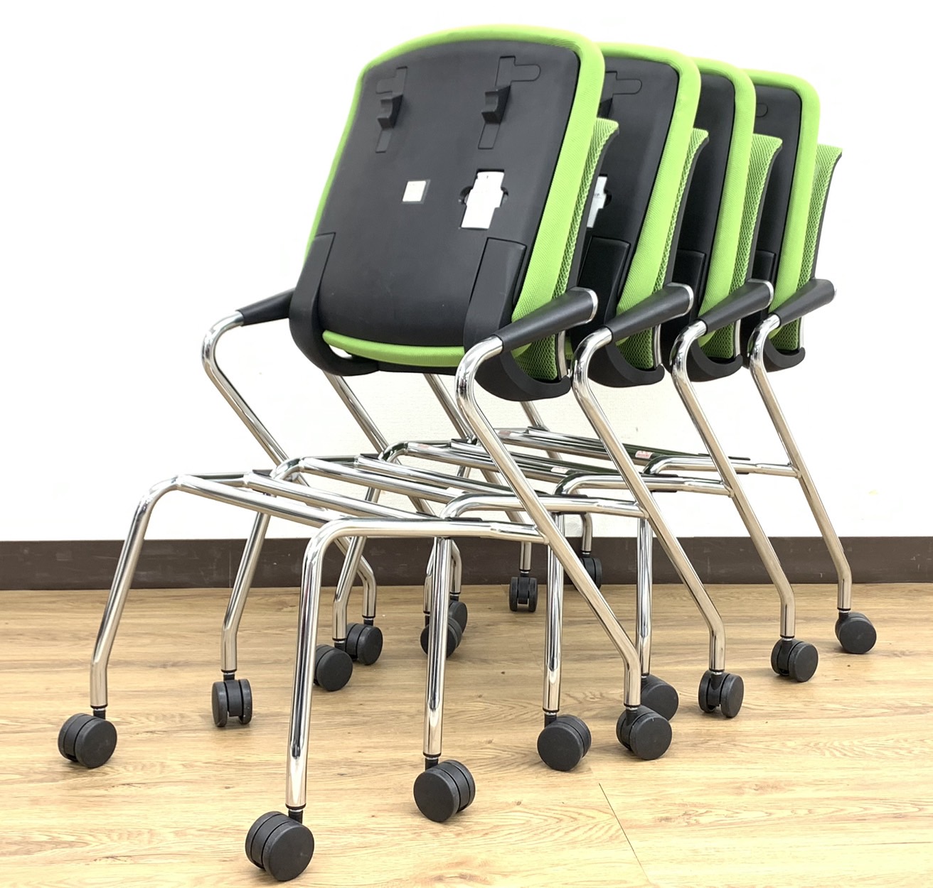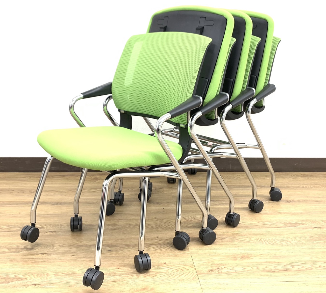 【2015年製】【4脚セット】会議室休憩室おすすめ!ネスティングタイプ&ヴィヴィッドグリーンサテリテチェア◆コクヨ製【RP】- 埼玉本店