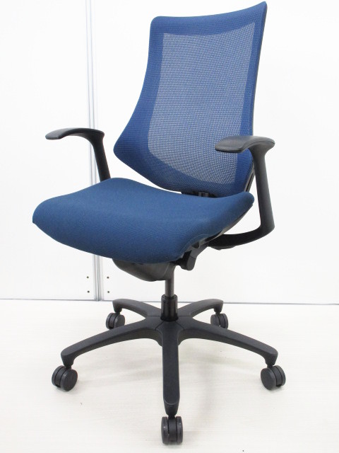 【シャープなフォルムに疲れにくさを追求!】■イトーキ製 エフチェア 肘付 ネイビーブルー- 川崎店
