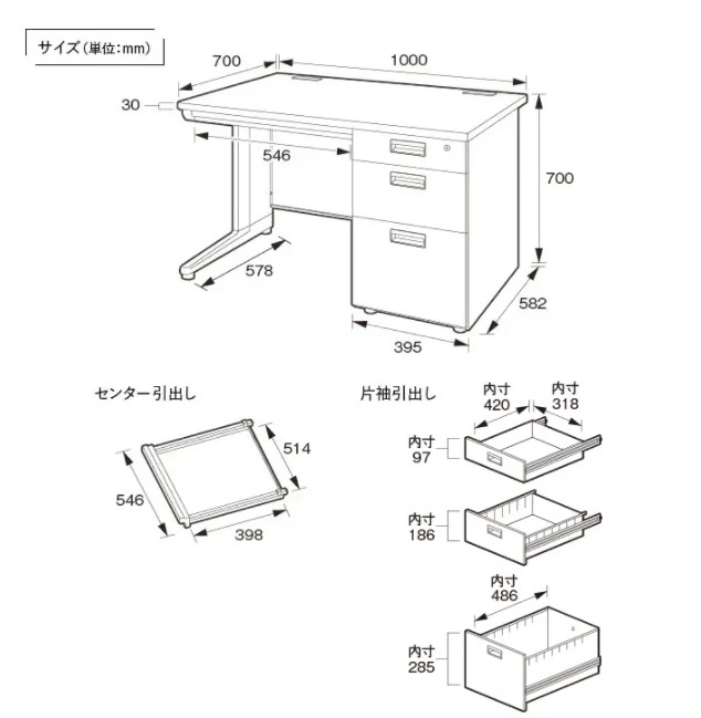 【新品】 コンパクトさと収納力を兼ね備えた片袖机 幅1000㎜- 新大阪店