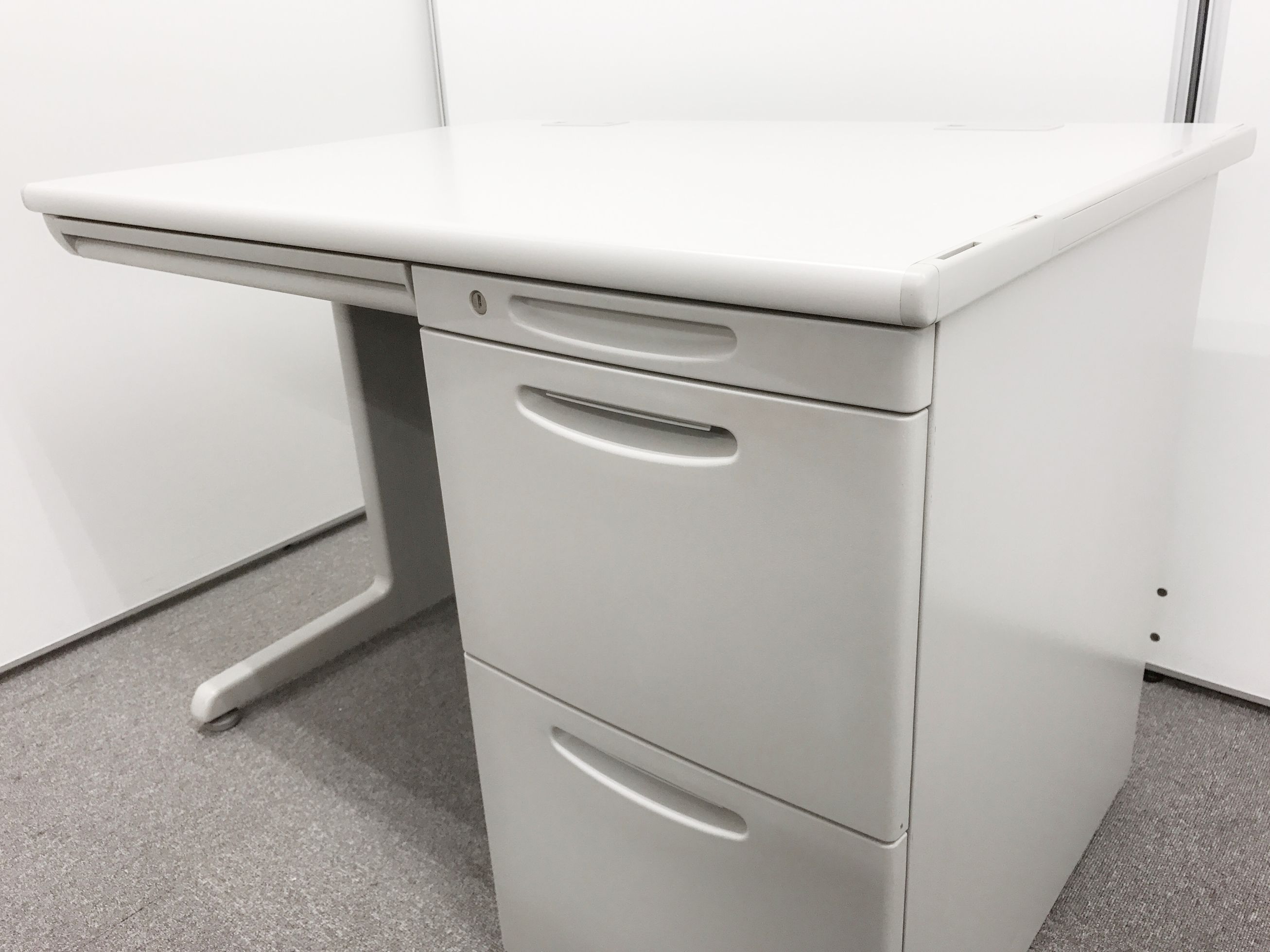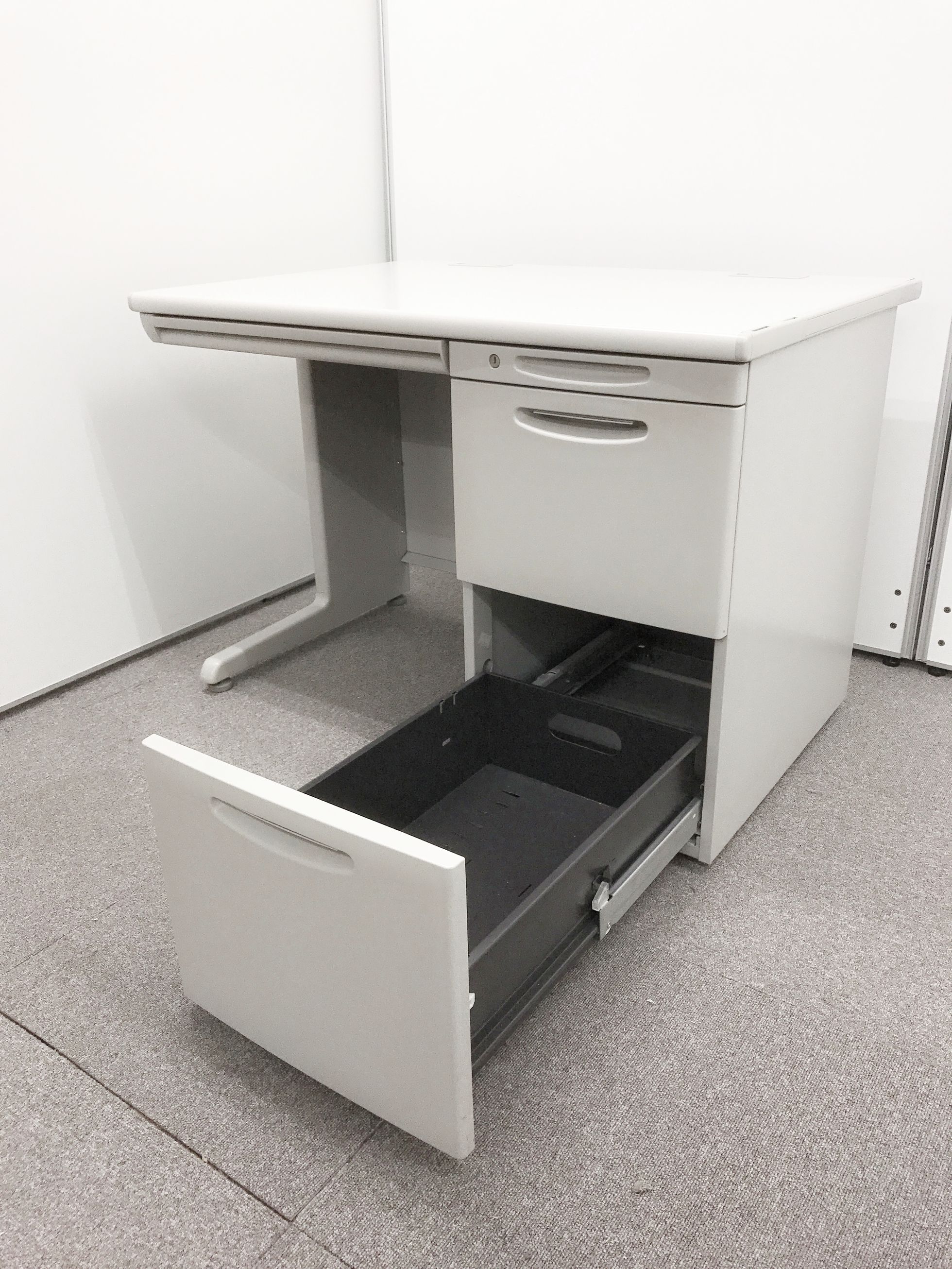 【コンパクトでスタンダード!使いやすい引き出し付きデスク!】■オカムラ(okamura)製 SD-Vシリーズ 平机+ワゴンセット(片袖机) 引き出し付き W1000㎜ ■ライトグレー ※ワゴンは在庫状況によって変動致します。
