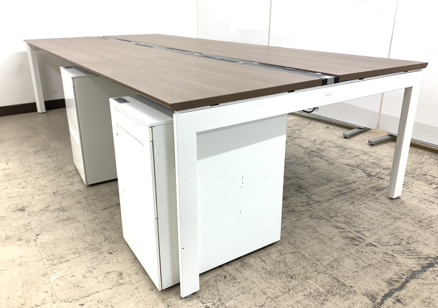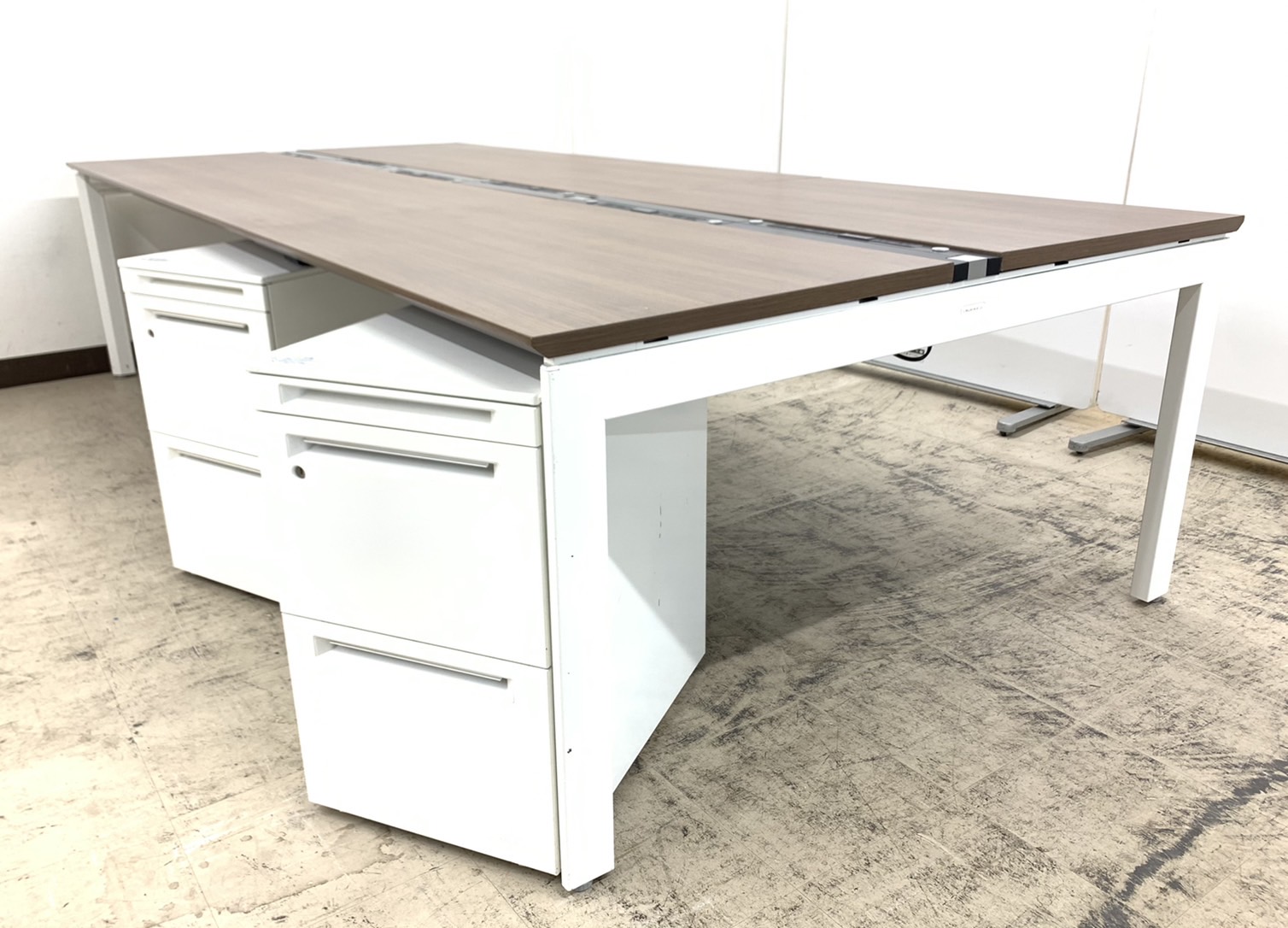 【幅2200㎜】レイアウト変更必須アイテムフリアドデスク&ワゴン4台セット※オープン脚ホワイト◆オカムラ製(MK39)【RP】- 埼玉本店