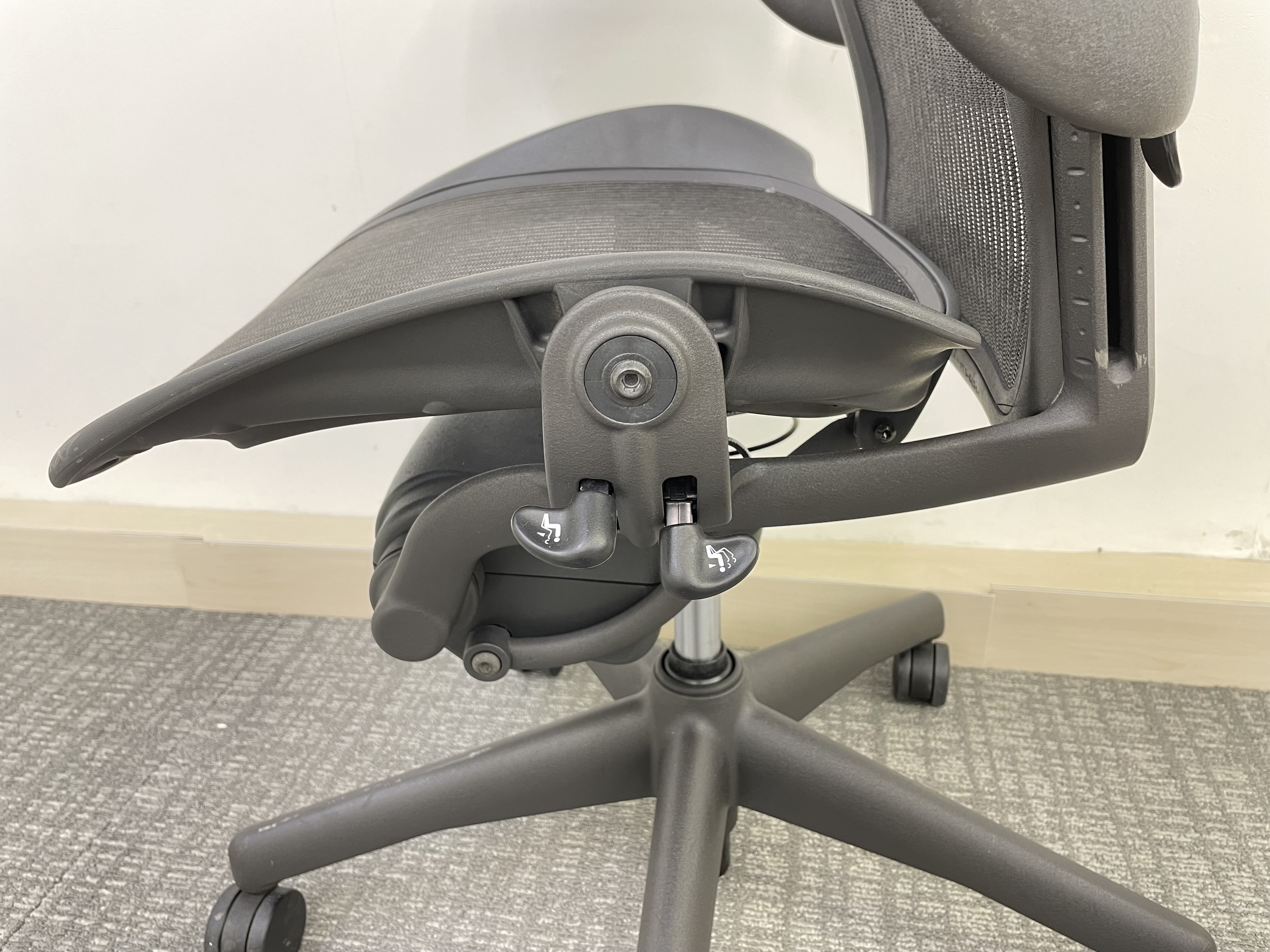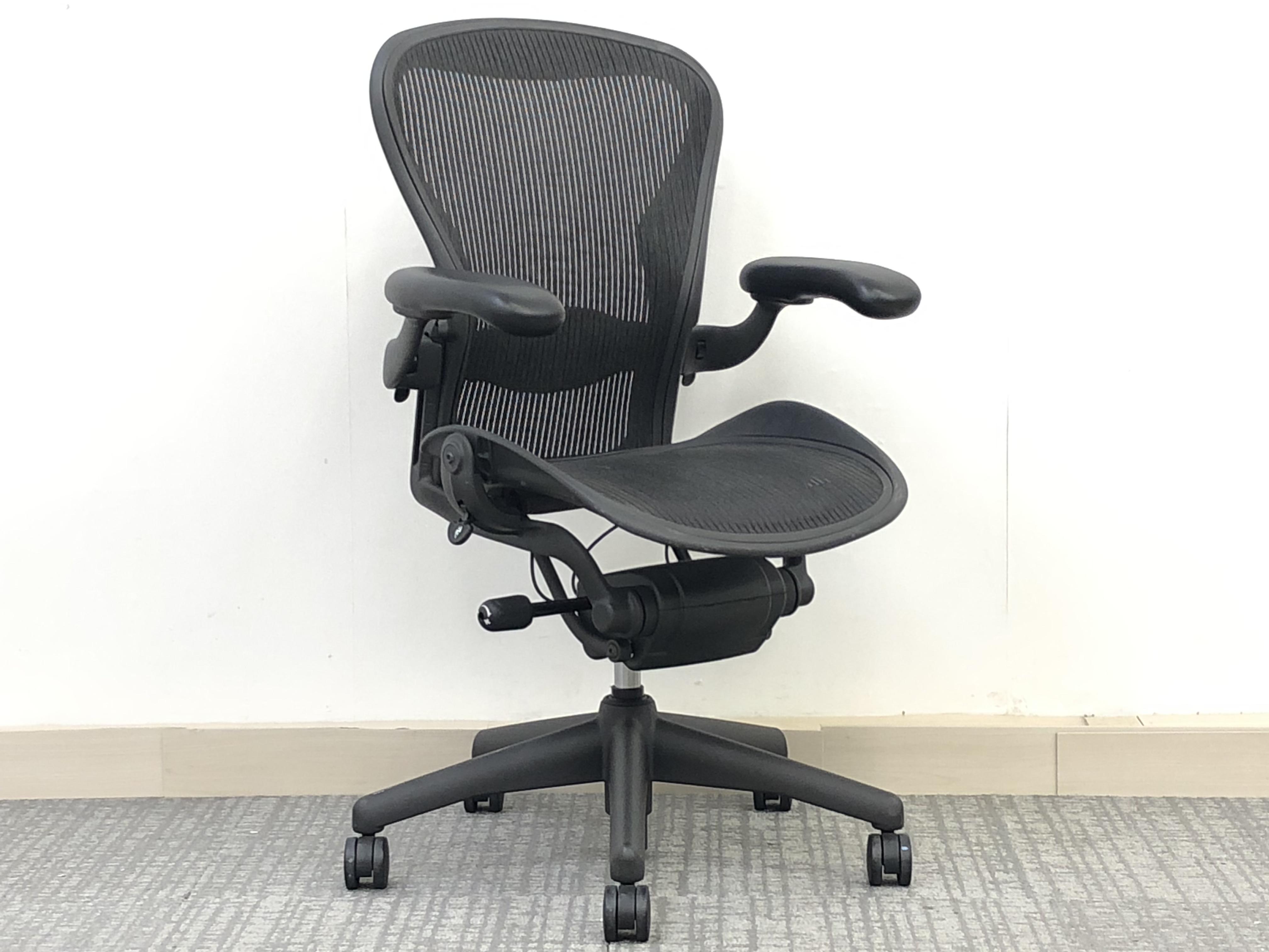 【★状態イマイチのためお安く!】■ハーマンミラー製 アーロンチェア Bサイズ 固定肘 ※キズあり・ランバーサポート無・昇降ガス圧弱めのためお安く!【訳あり特価品】