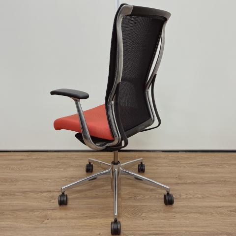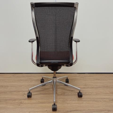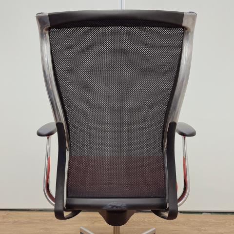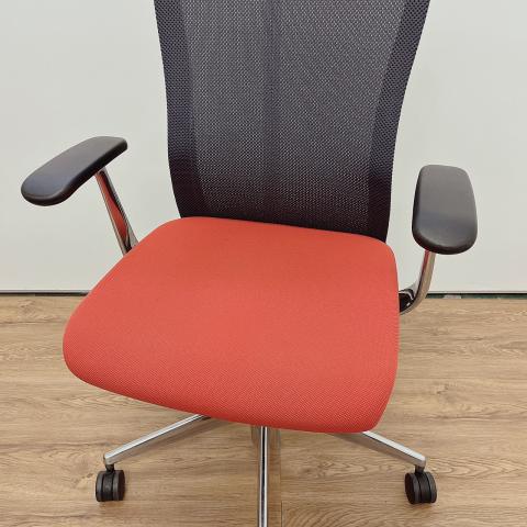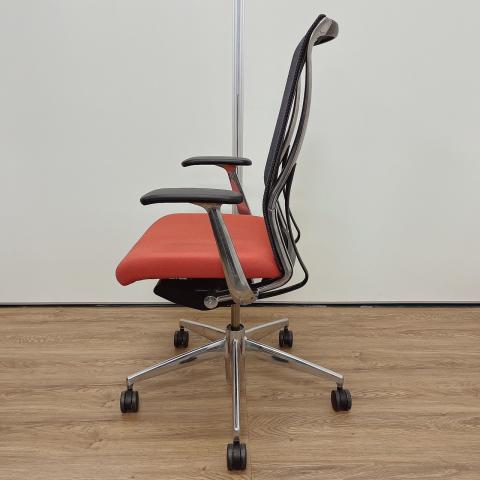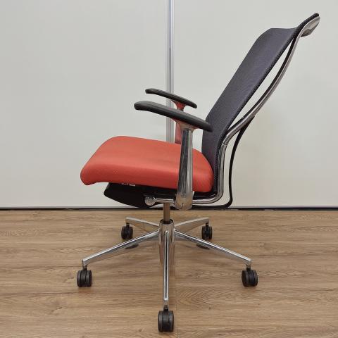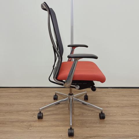 - 大きな曲線を描くフレームと表裏で見え方が変わる特殊メッシュで構成された背もたれ、そして2層構造の技術によって実現できた快適ながらも薄い座面は、先進的でありながらも柔らかさのあるスタイリッシュなデザインを実現しています。