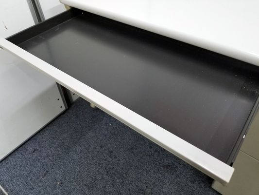 - 袖机のワゴンは、最下段がロング引出しになっており、従来より収納力120%アップ。