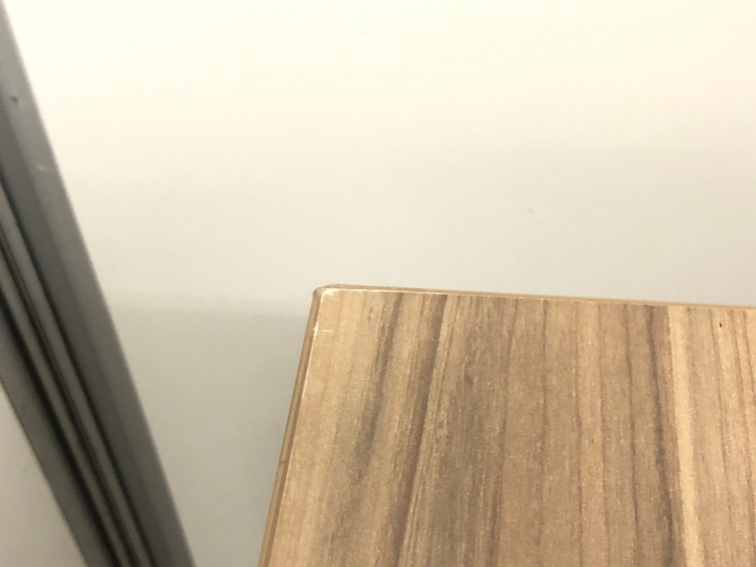 - あり黄ばみ・変色が広い範囲にうっすらある、または濃い黄ばみ・変色が一部ある。(例、天板、幕板、棚板、サイド部分、脚部等にある。)