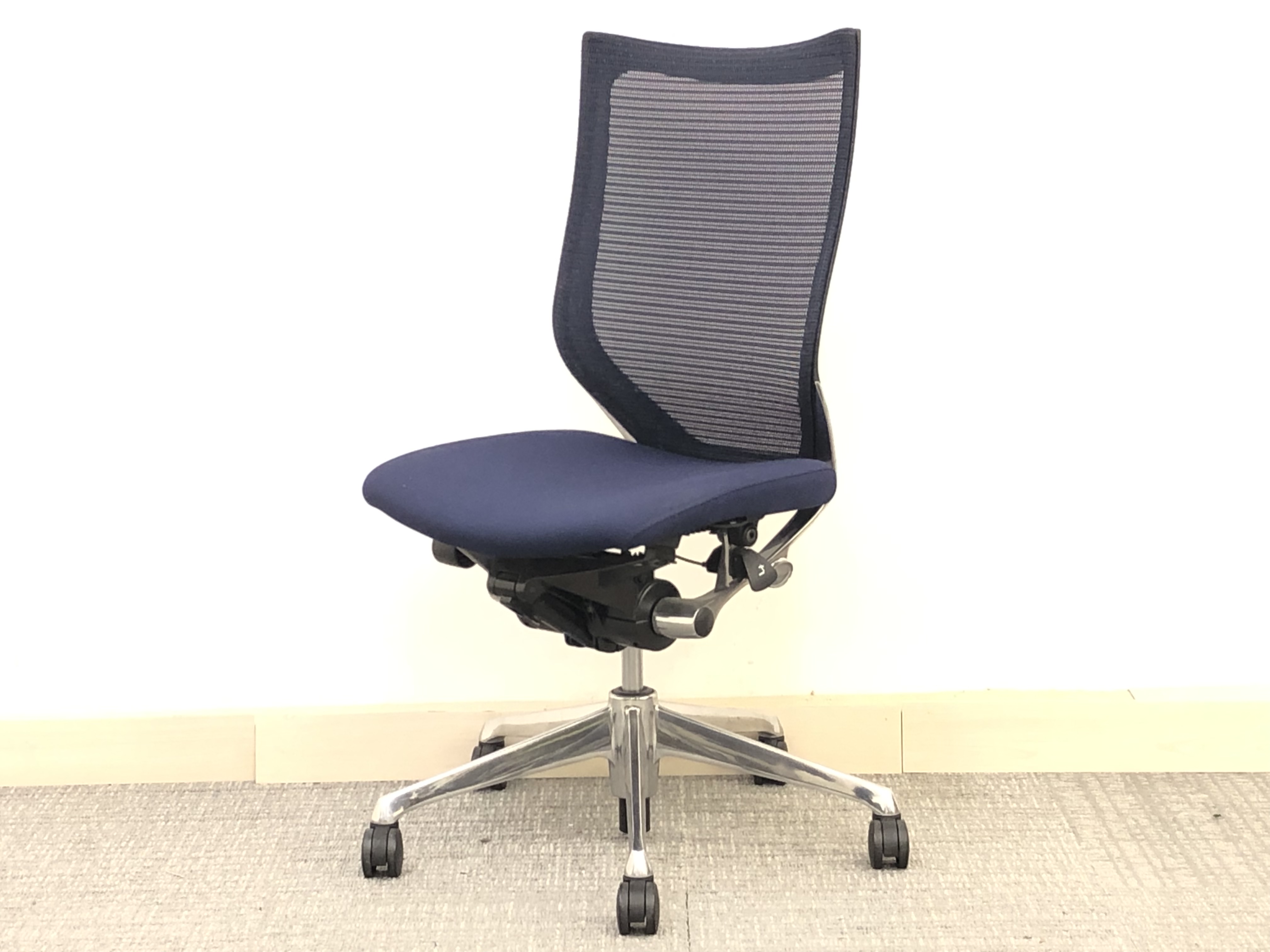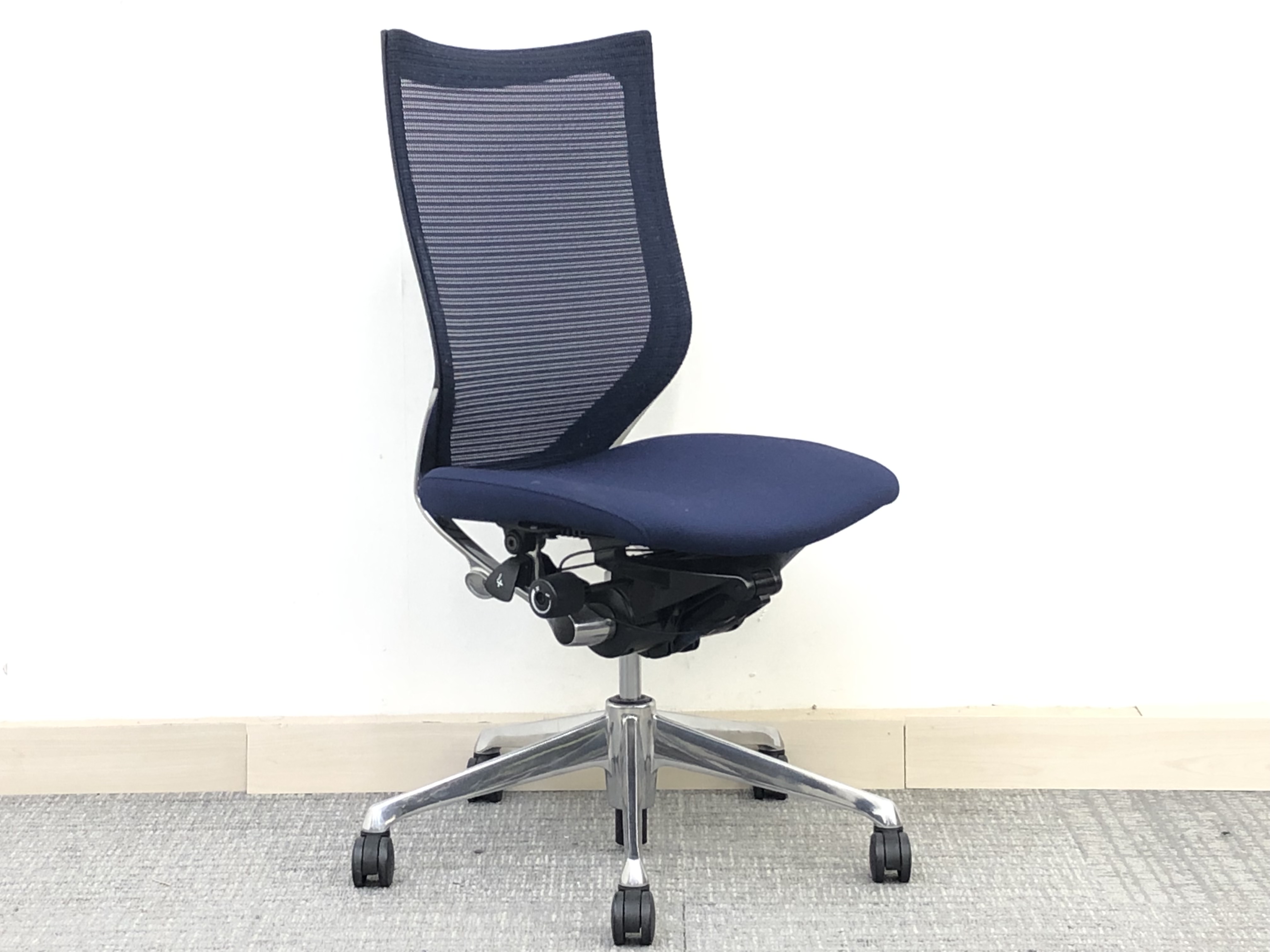 【長時間の着座でも疲れにくいサポート感!】■オカムラ(okamura)製 バロンチェア(Baron) 肘無し ハイバック ■メッシュ ■ダークブルー 【ベストなポジションが得られる先進設計!】〈岐阜・愛知・三重・静岡・福井〉