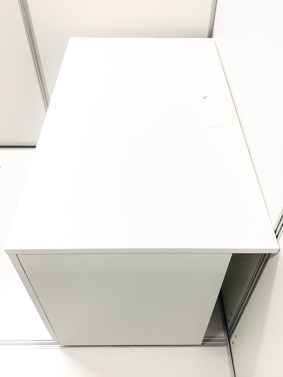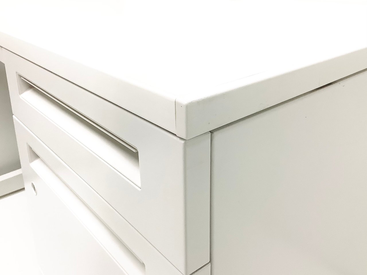- 机の角がシャープなので、隣り合うデスクがフラットにつながります。すっきりとしたデザインです。