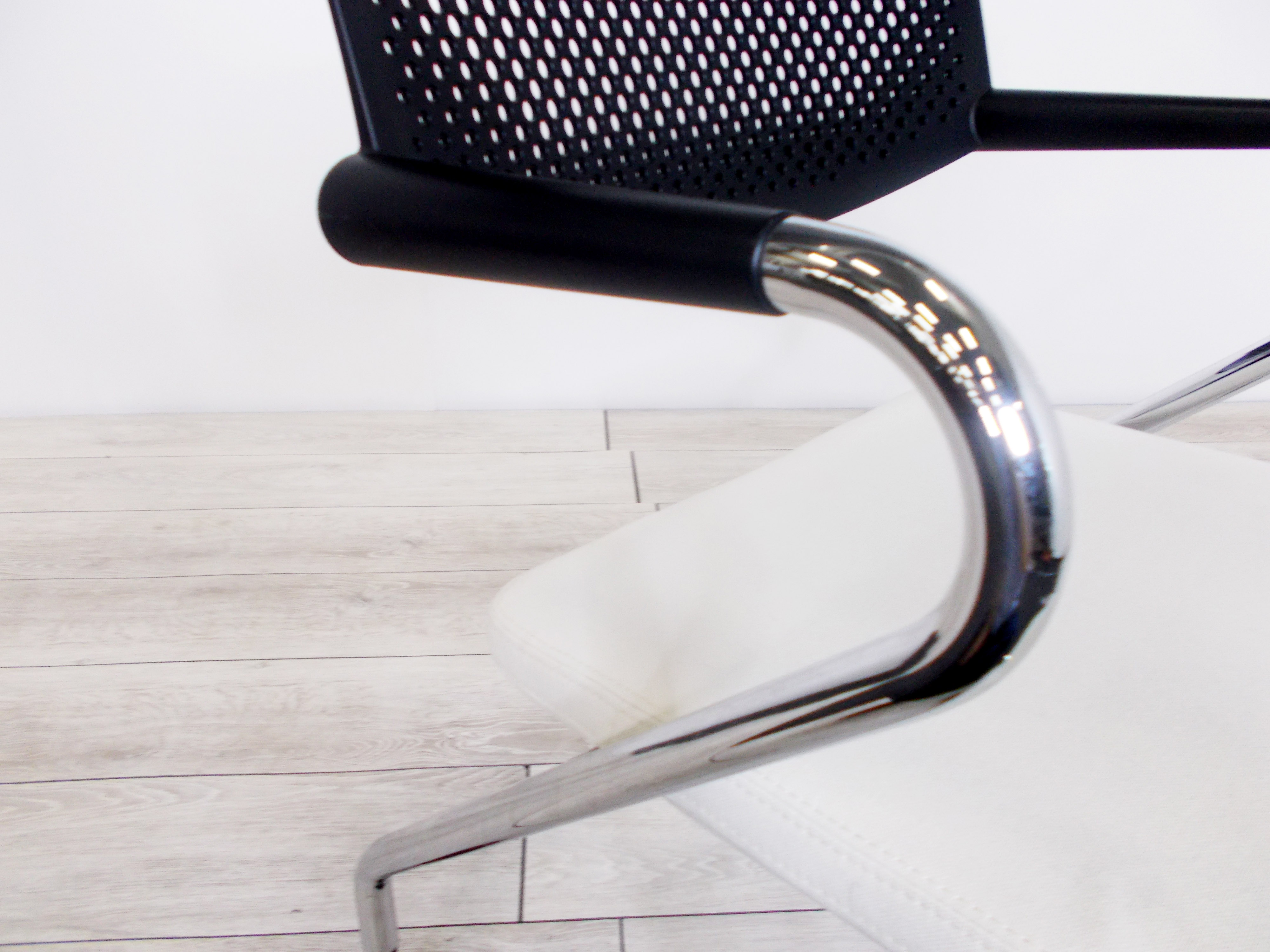 - かなり強い濃い黄ばみ・変色が商品全体にある。(例、座面・背もたれ、脚部等にある。)