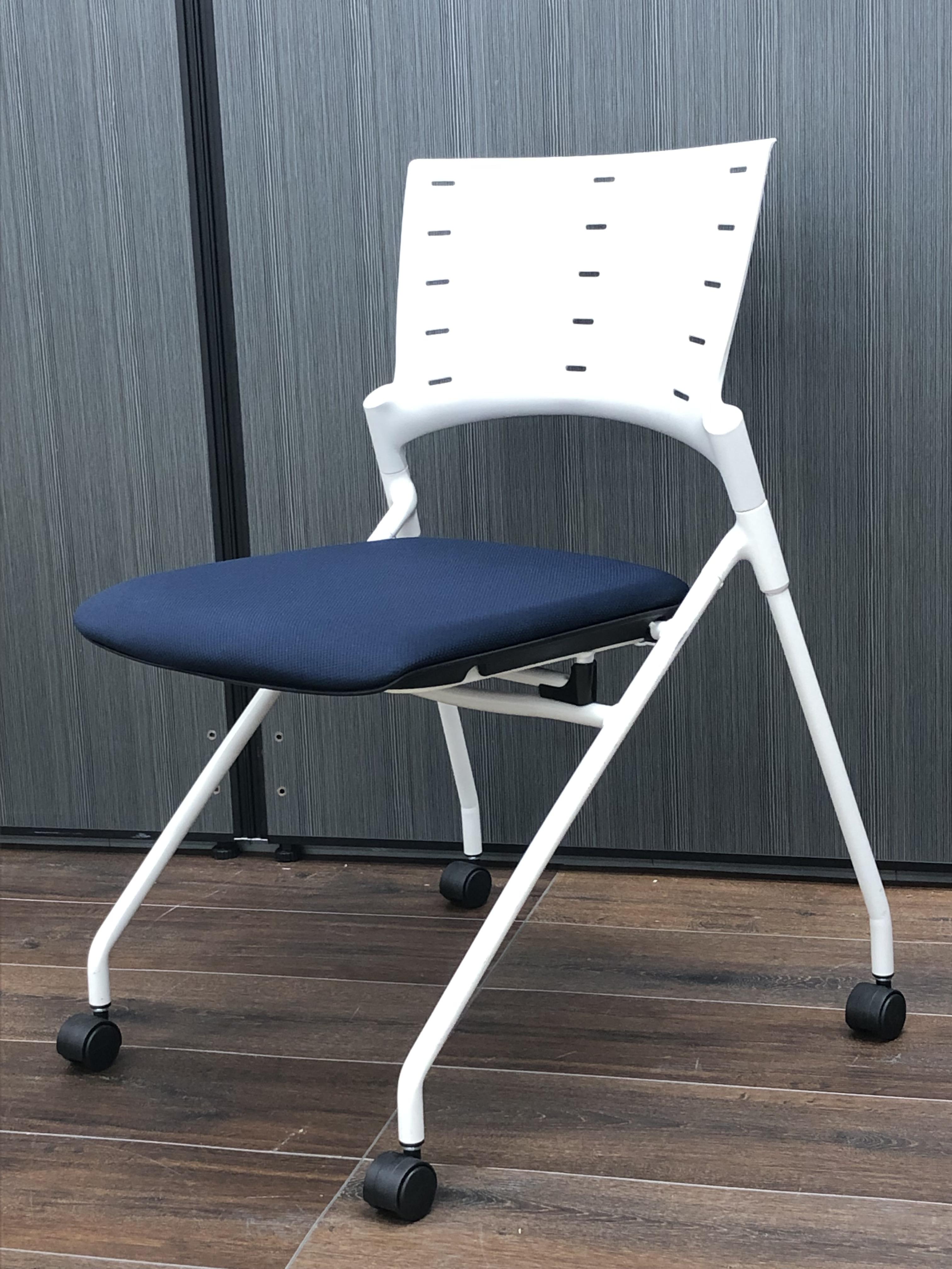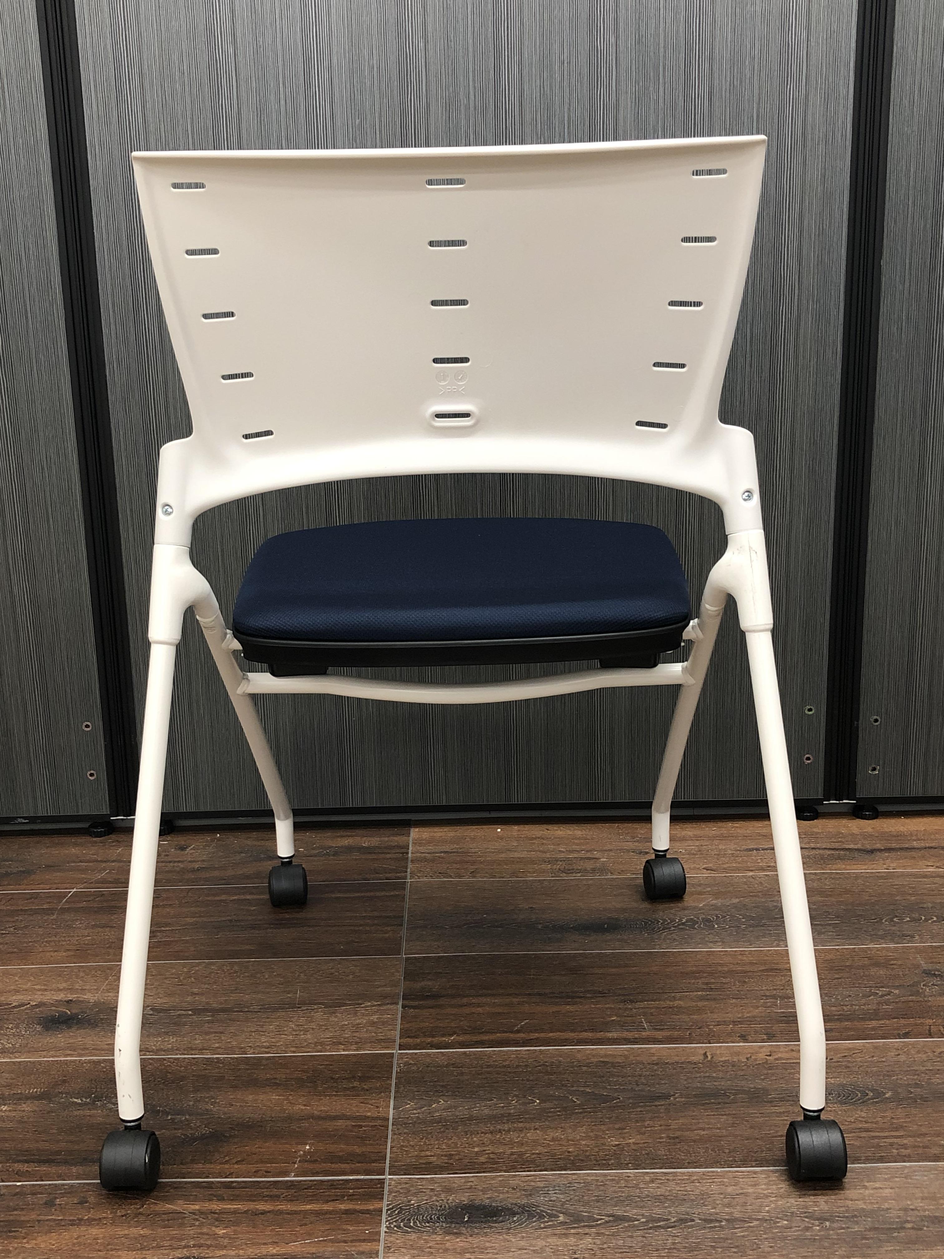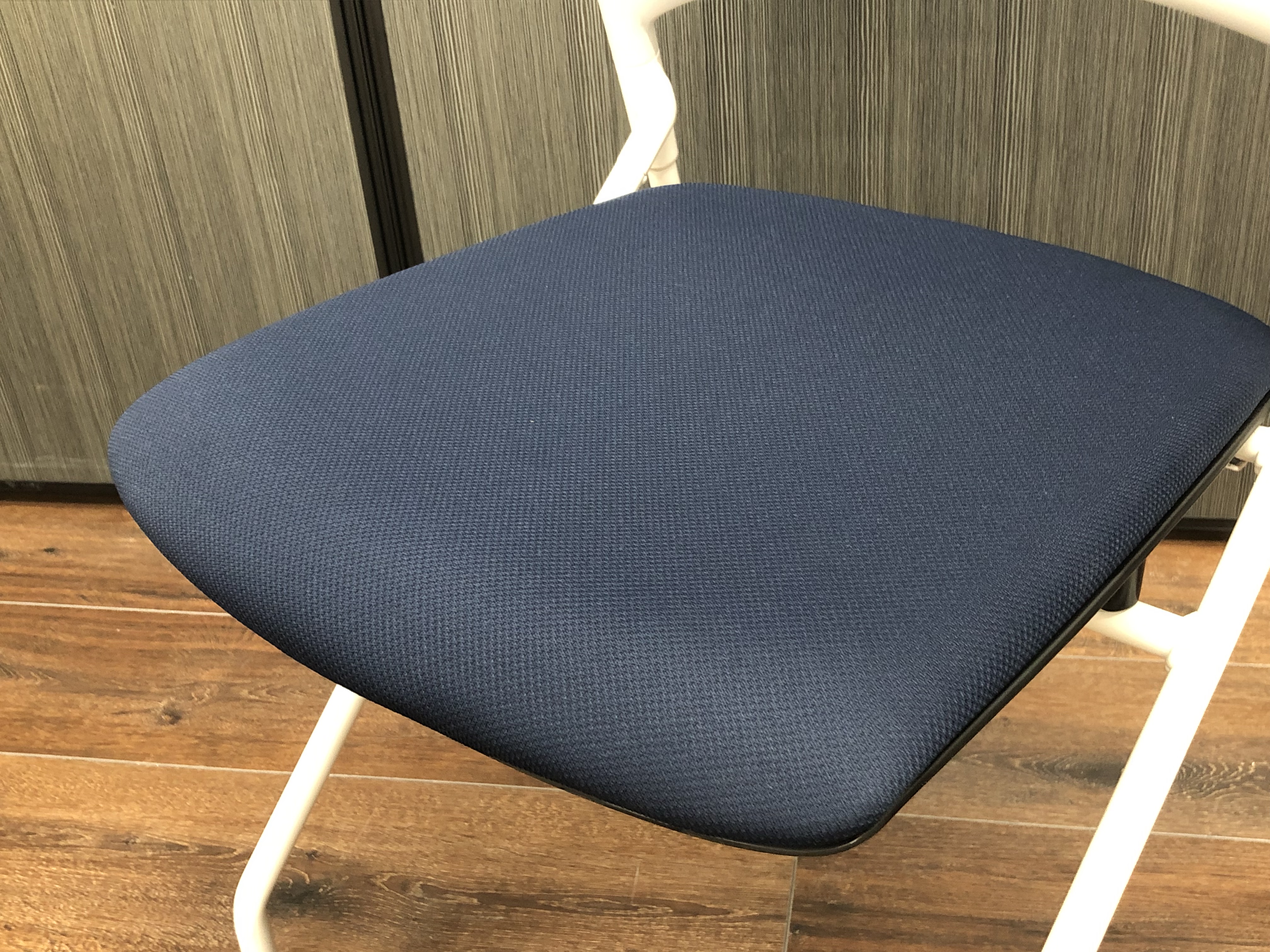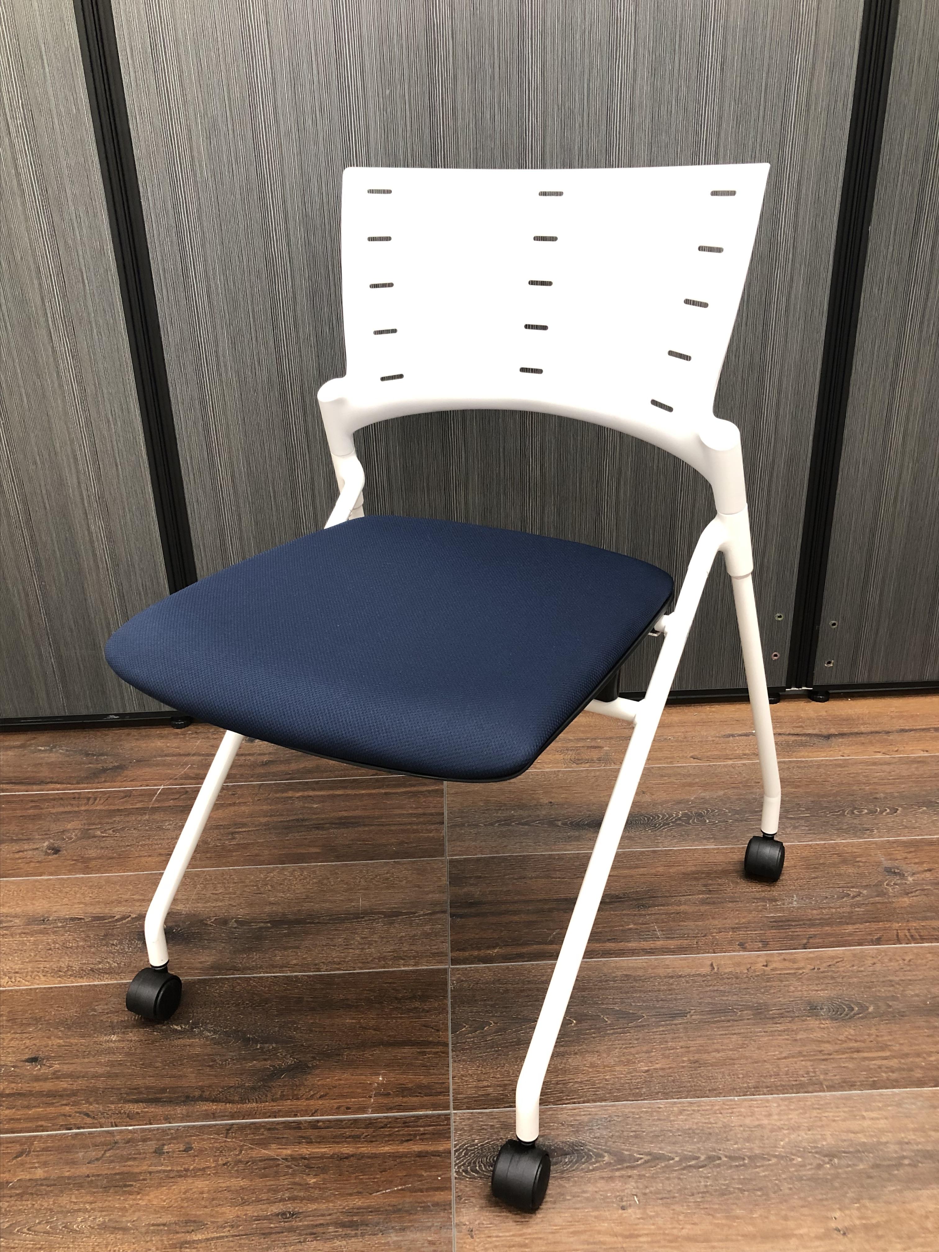 【セミナーや会議用にオススメ!平行ネスティングで省スペース化!】■イトーキ製 マノス ネスティングチェア ■背パッド付 キャスター付き ■ネイビーブルー オフィスバスターズ心斎橋店 ロット在庫