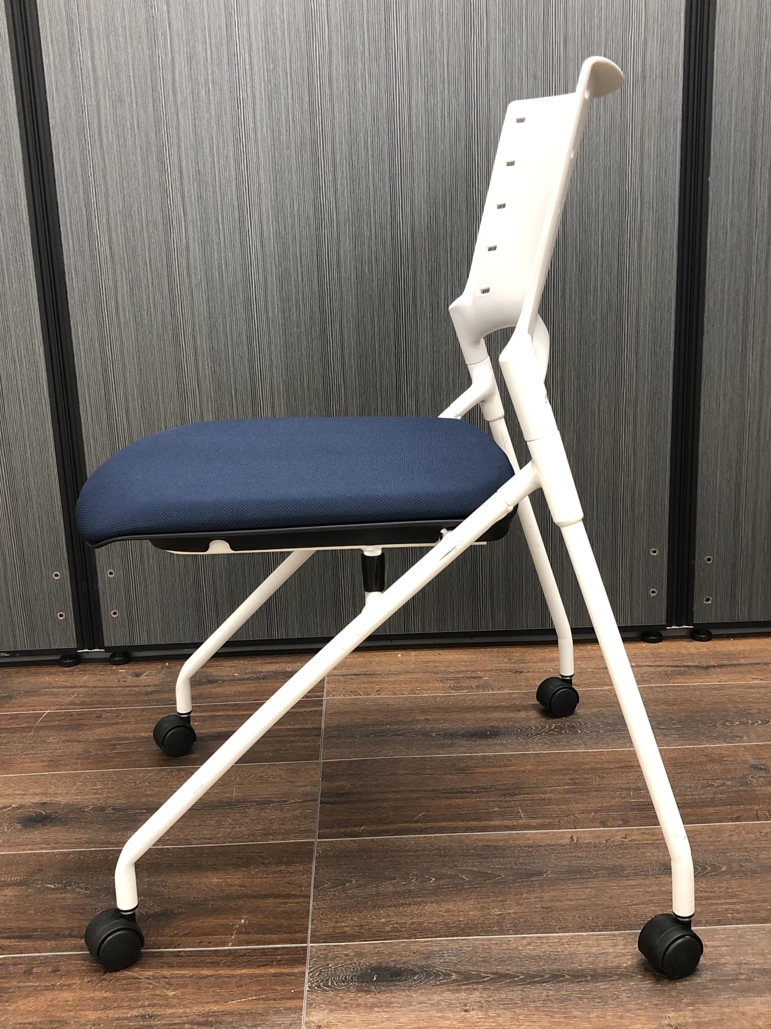 【キャスター付でスイスイ動かせる!省スペースで収納可能!会議や研修にオススメ!】■イトーキ製 マノス(MANOSS) ネスティングチェア 背面パッド無し ■ストロングブルー ■オフィスバスターズ東大阪店 【W】