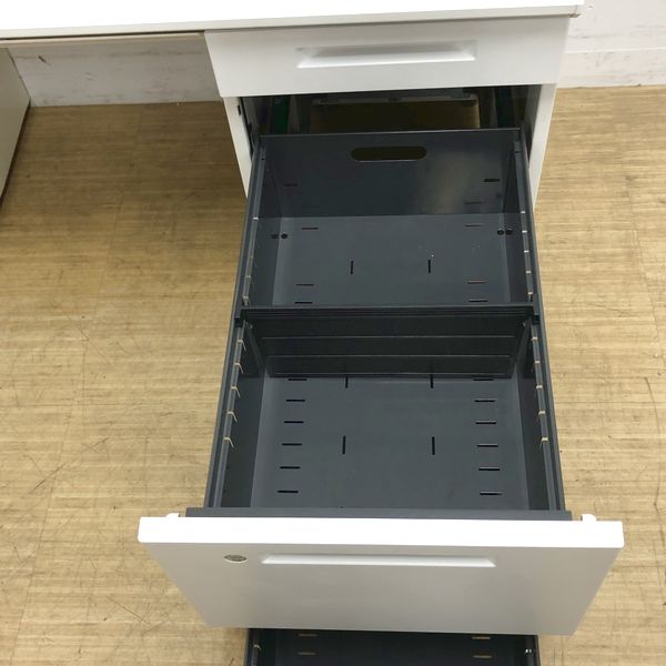 【T11】【商品入替のため、残り4台限り】コクヨ製 アイエス(IS) ホワイト 両袖 デスク W1400xD700xH720サイズ シリンダー 収納スペース充実! 机上をスッキリ整理! 幅広いワークスペースで上長席にもオススメ! W1400両袖机!!