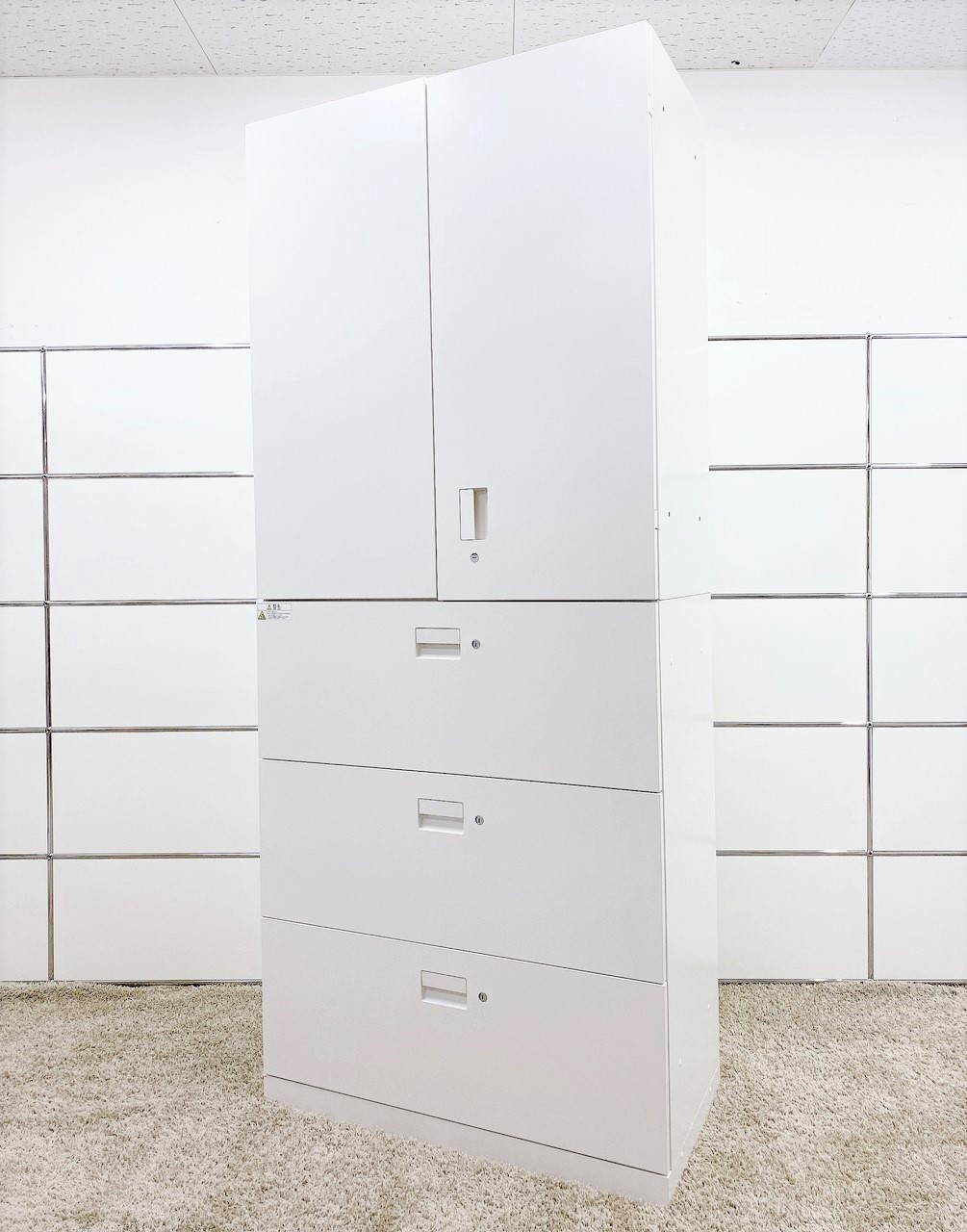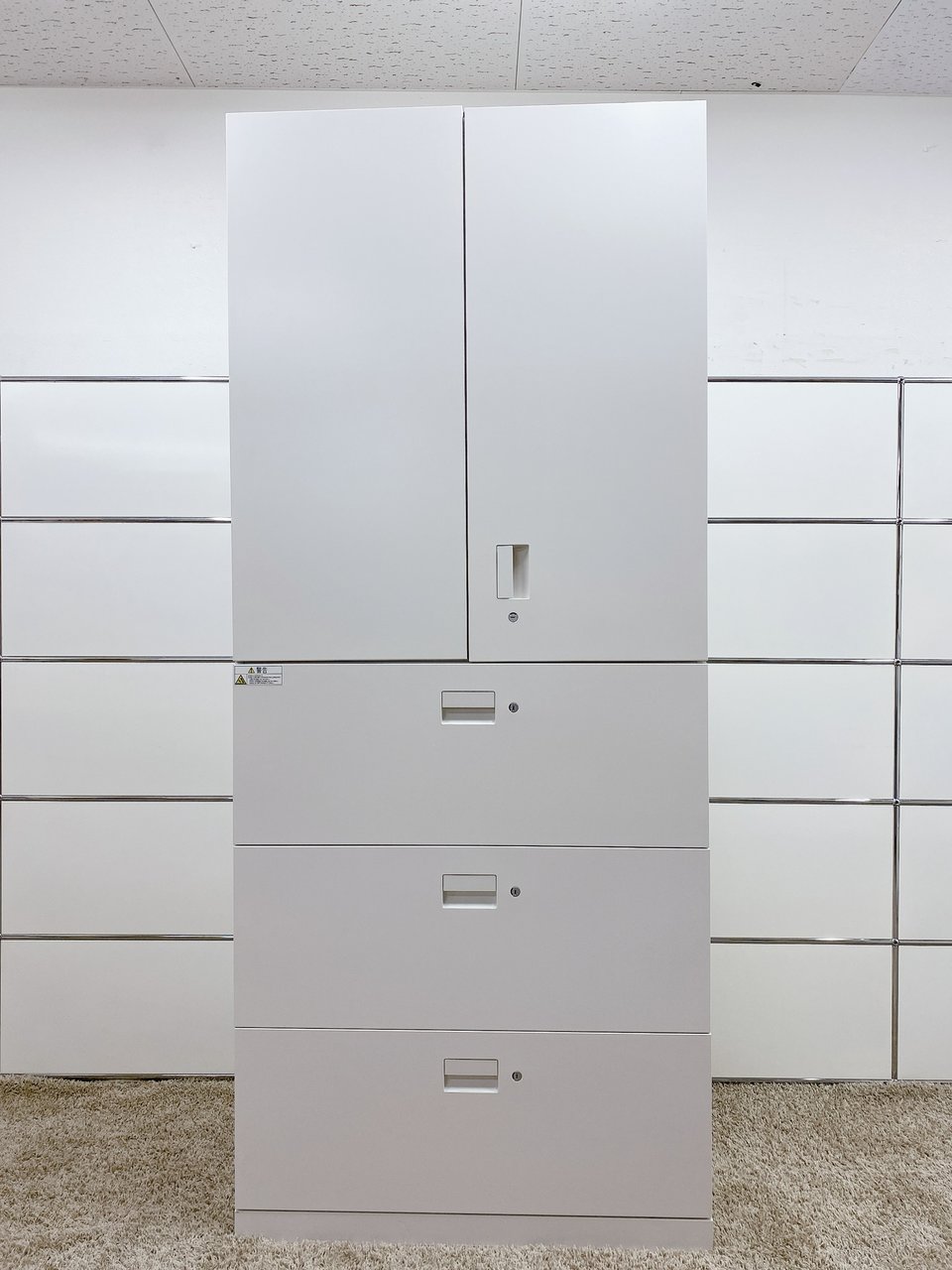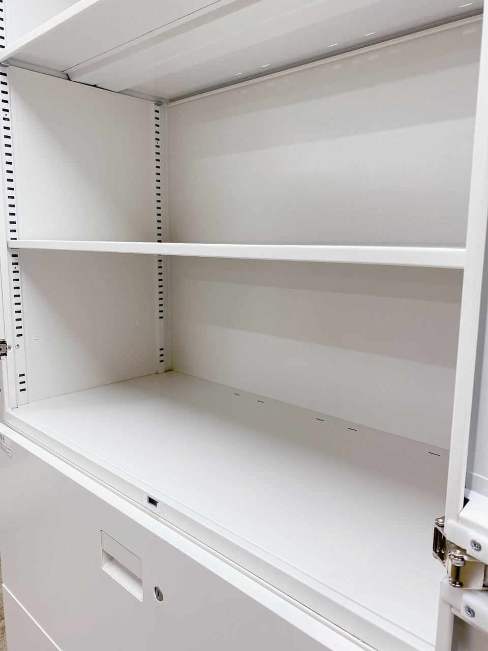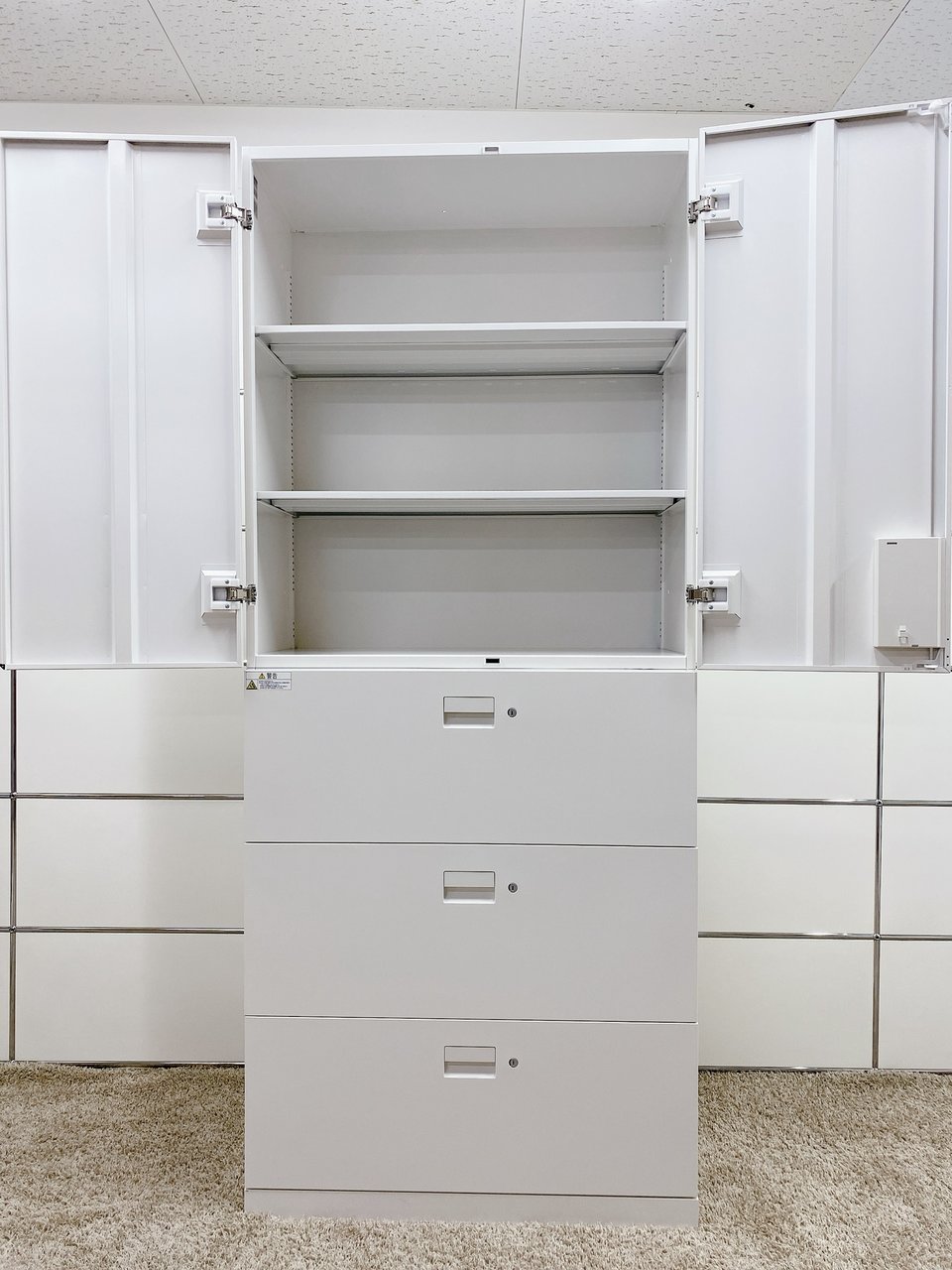 【使いやすさが人気です!】■イトーキ エスシリーズ 上下書庫セット 両開き+3段ラテラル シリンダー錠 ホワイト- 千葉店