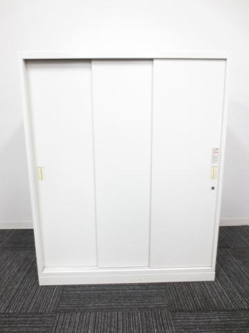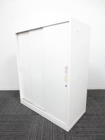 オカムラ製 人気レクトラインシリーズ ホワイト シリンダー W800xD450XH1050 3枚引戸 ※ベースなし 3枚引き違い書庫!!