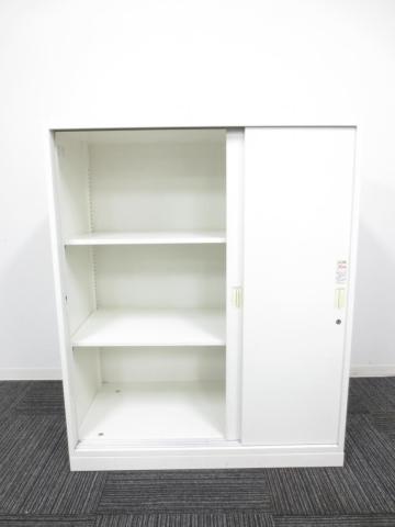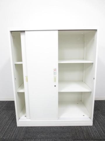2枚引き戸書庫 オカムラ レクトライン 鍵付き シリンダー錠 ホワイト 天板無し スライド式の扉のため導線を邪魔しません